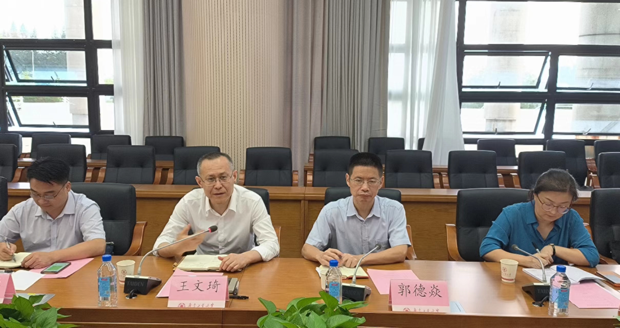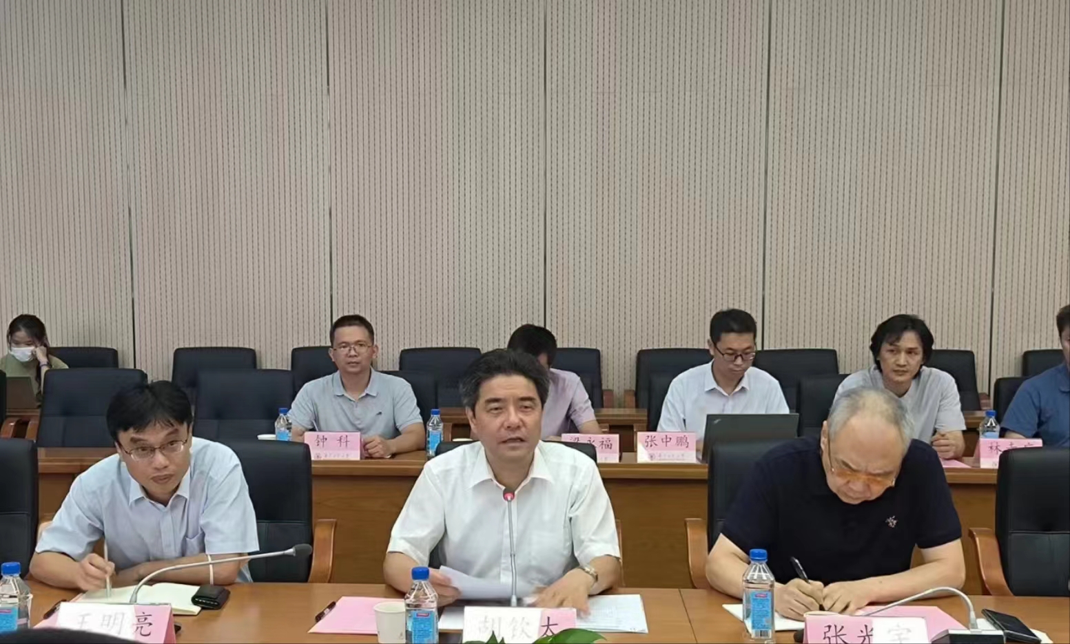 胡钦太代表学校对广州市主管部门领导来访调研表示热烈欢迎,介绍了学校的基本情况、发展历史、办学特色和快速发展取得的成绩;并表示将以此次座谈会取得的成果为契机,进一步明确决策咨询研究基地定位,聚焦广州市委市政府决策咨询需求,厘清基地发展路径,做好信息对接沟通,不断锤炼研究队伍;强化激励机制,修订完善相关成果评价办法,营造良好氛围;努力做好基地成果转化,进一步提高决策咨询研究质量,不断扩大基地影响力,发出最强广工声音。