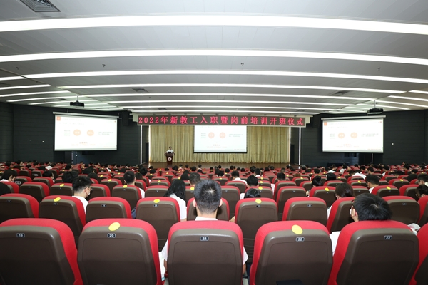 为帮助新入职教工尽快适应学校教书育人各项工作,落实立德树人根本任务,凝“新”聚力启新程,10月14日,学校在大学城校区大讲堂中心报告厅(主会场)举办2022年新教工入职暨岗前培训开班仪式,揭阳校区设视频分会场同步直播。学校党委书记胡钦太,党委副书记、校长邱学青参加仪式并分别为新教工讲授思政师德第一课和校史校情第一讲,288名新教工身着统一服装、佩戴红色校牌,精神饱满地参加了本次培训。仪式由副校长栾天罡主持。