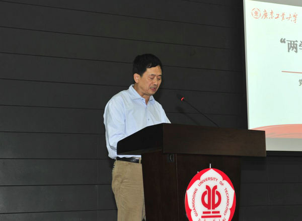 广东省委党史研究室主任杨建伟教授应邀作了题为《努力践行“两学一做” 切实发挥先锋模范作用》的专题辅导报告。他主要讲了四个方面的问题:一是“两学一做”学习教育的基本内涵,二是党员要坚定理想信念,三是党员要忠诚、干净、担当,四是党员要践行“全心全意为人民服务”的根本宗旨。他认为,“两学一做”学习教育是当前一项重大的政治任务,是协调推进“四个全面”战略布局,特别是推动全面从严治党向基层延伸的有力抓手。通过“两学一做”学习教育,达到使广大党员干部做到“四个进一步”的目的。