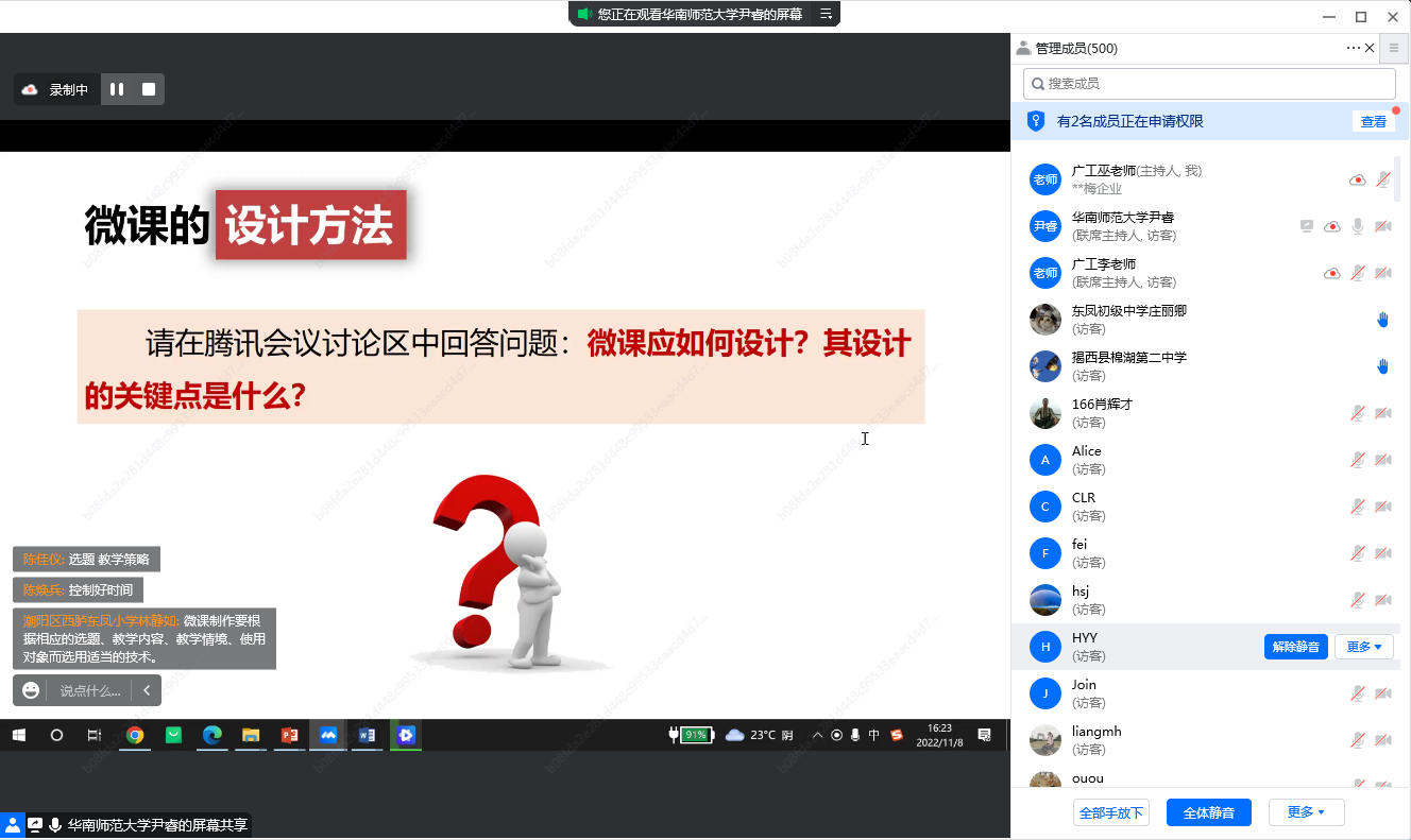 “微课在我们的教学实践中用的频率还蛮高的,我们的困难在于缺乏生动有趣的课程设计理念,操作方式比较简单,尹睿老师主讲的微课设计,简洁清晰,让我们再次理解了优质微课的价值,为以后教学指明了方向!”