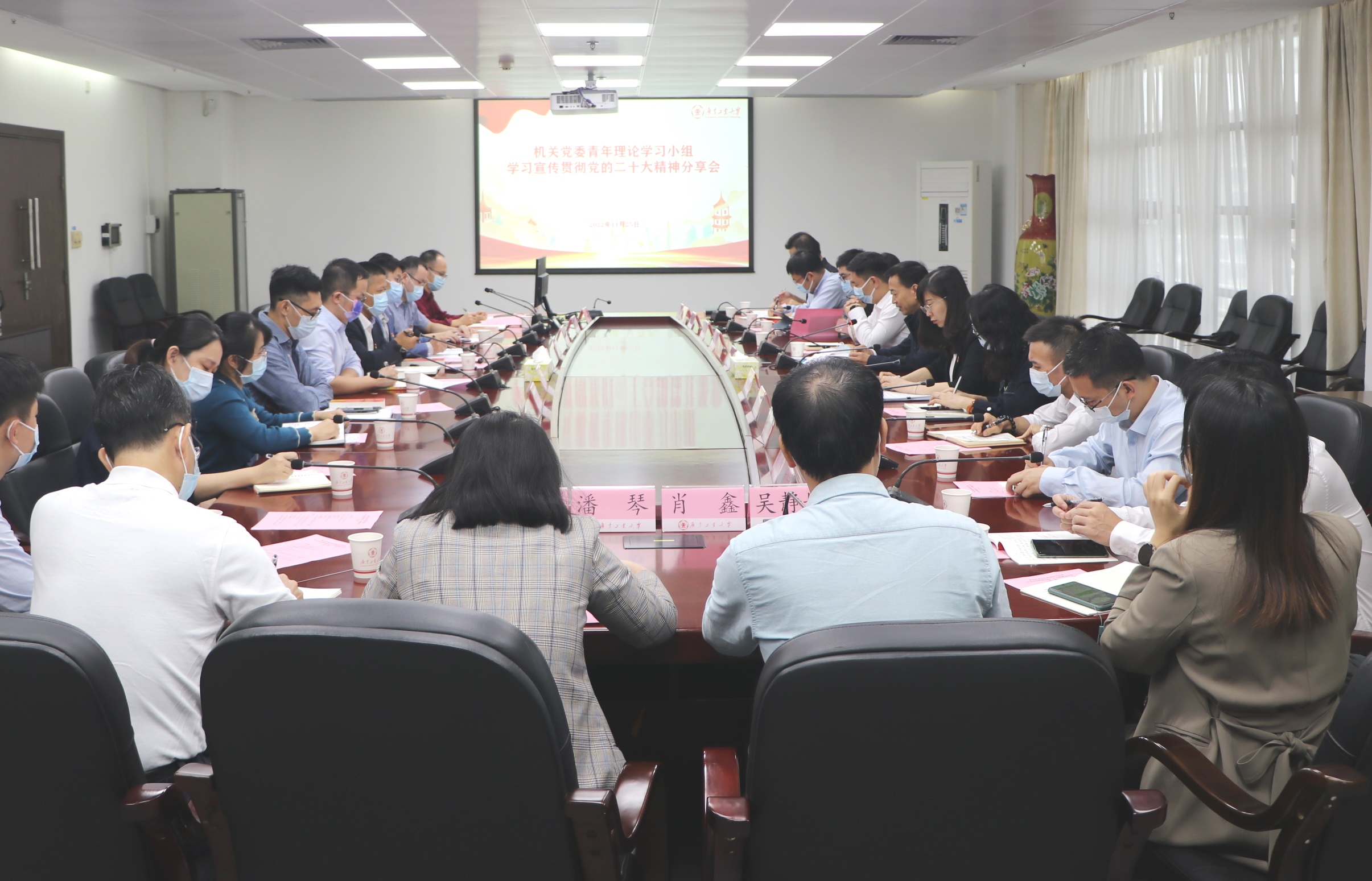 11月25日,机关党委青年理论学习小组与团委党支部在大学城校区行政楼602会议室召开学习宣传贯彻党的二十大精神分享会。学校党委副书记陈良友出席并指导,马克思主义学院副院长曹亚琴副教授应邀在会上作党的二十大精神学习辅导报告,机关党委青年理论学习小组成员、团委党支部党员参加。