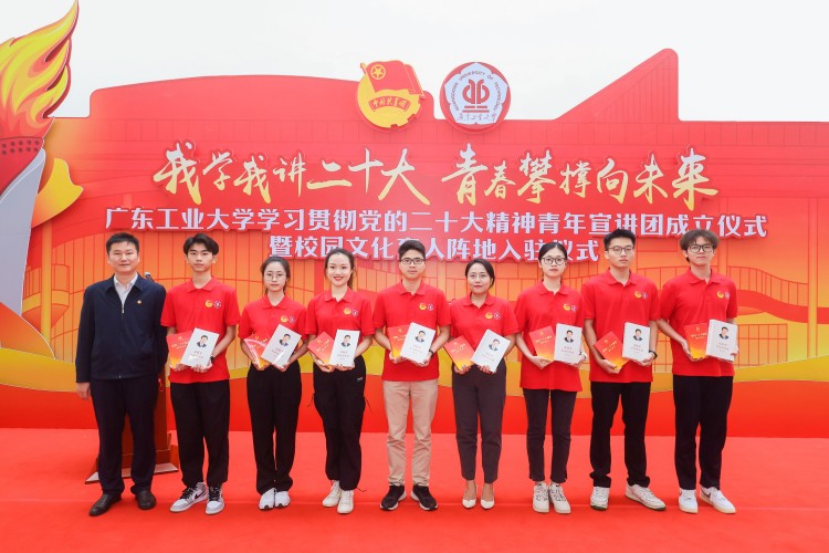 为深入学习宣传贯彻党的二十大精神,激励和引领广大青年学生坚定跟党走、奋进新征程,同时以学生文化活动中心投入使用为新的起点助力校园文化建设,更好发挥学生文化活动中心育人功能,11月30日,学校学习宣传贯彻党的二十大精神青年宣讲团成立仪式暨校园文化育人阵地入驻仪式在大学城校区文化活动中心举行。学校党委书记胡钦太,党委副书记陈良友、朱蔚蔚,党委常委、副校长陈卓武,党委常委、宣传部部长张育广,相关职能部门负责人、专兼职团干部代表、青年宣讲团师生代表、学生组织和学生社团骨干代表等参加活动。