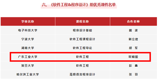 欧毓毅老师《软件工程》获“优秀课件”