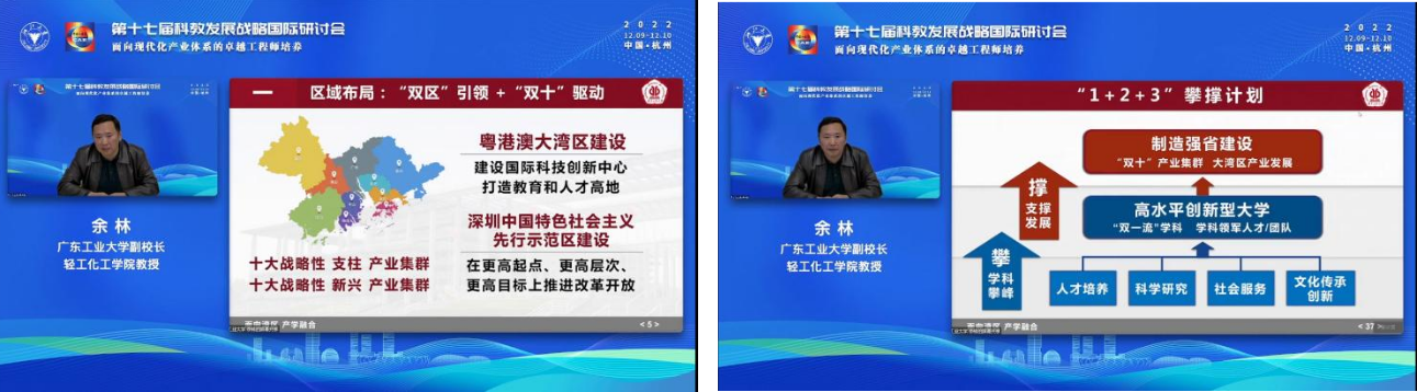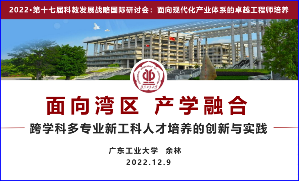 12月9日-12月10日,由浙江大学、中国工程院教育委员会主办,中国高等教育学会工程教育专业委员会、浙江大学社会科学研究院协办的第十七届科教发展战略国际研讨会于在线上召开。广工余林副校长代表学校受邀作会议报告《面向湾区,产学融合----跨学科多专业新工科人才培养的创新与实践》。