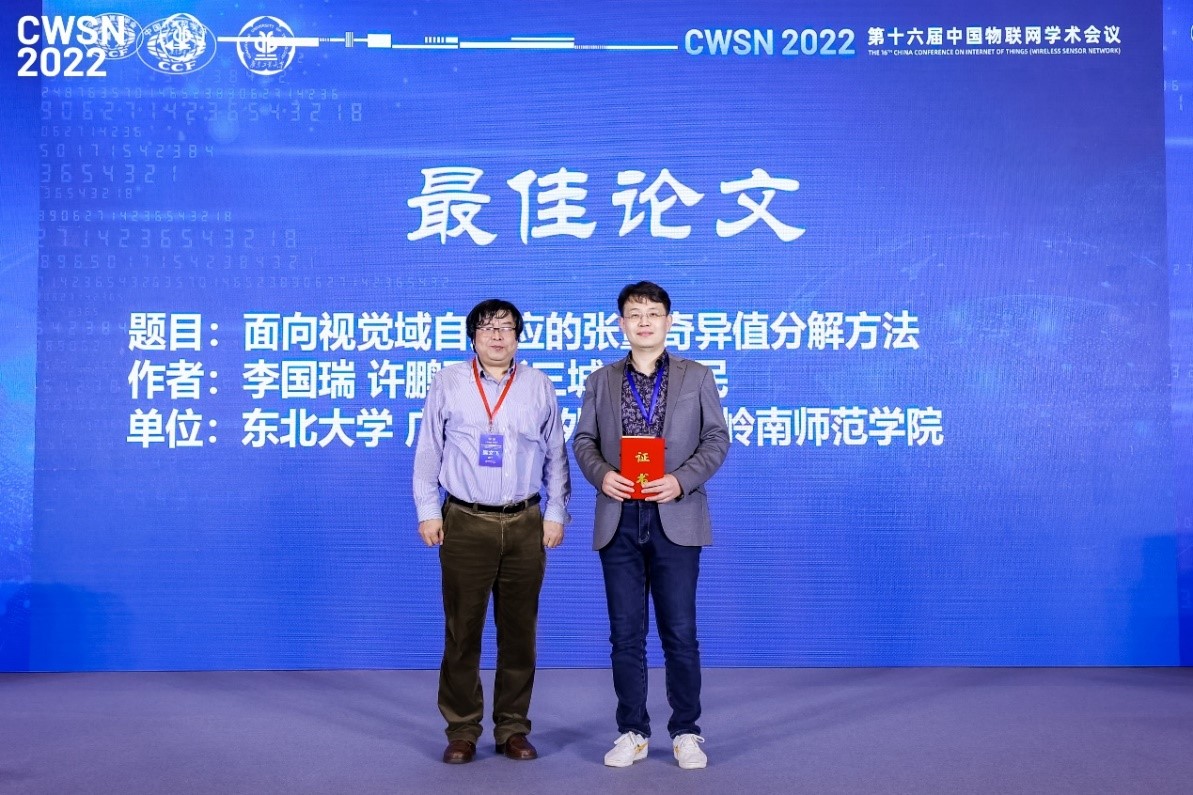 本次大会共收到无线传感器网络理论与技术、物联网服务与应用技术、智能物联网、云计算与边缘计算、物联网安全与隐私保护等研究方向的投稿论文204篇(中文117篇,英文87篇),充分反映了CWSN学术会议在相关领域的影响力、学术认可度和广泛的学术合作。经过严格的评审和讨论,大会最终录用论文稿件118篇(其中英文稿件34篇,中文稿件84篇),东北大学李国瑞副教授等获得CWSN最佳论文奖。