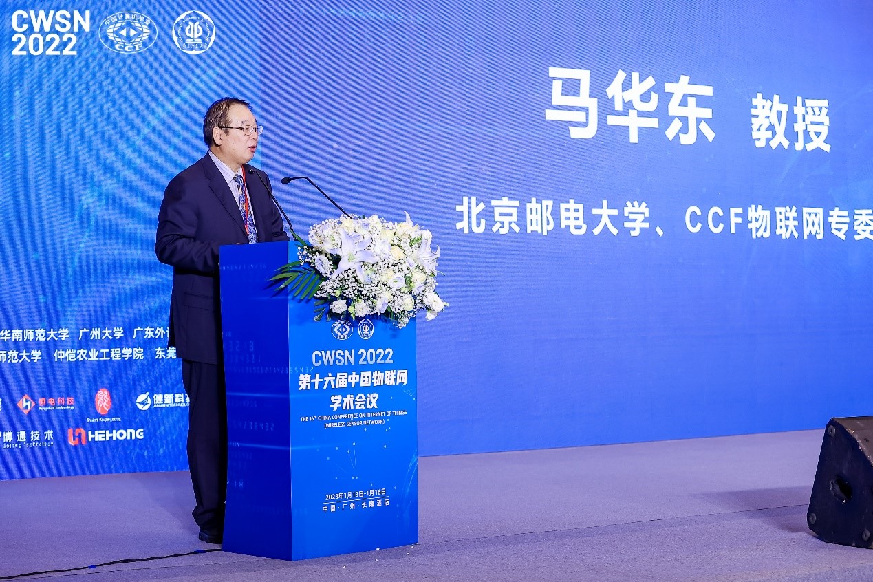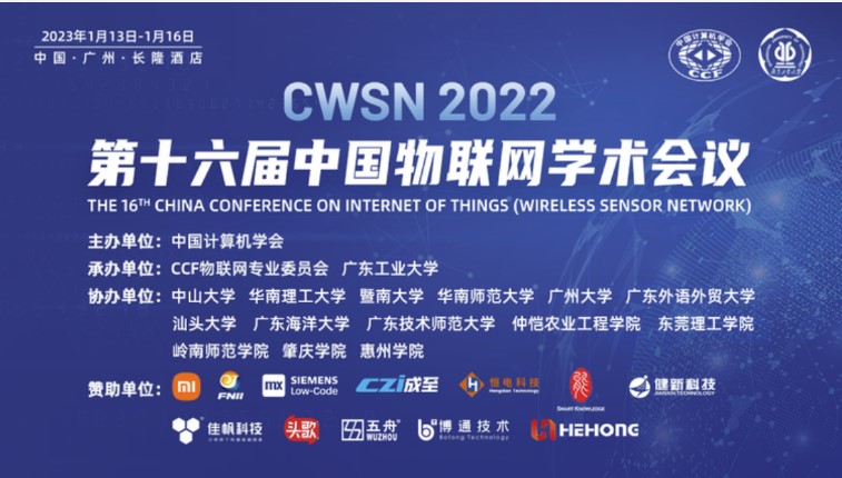 由中国计算机学会(CCF)主办、CCF物联网专委会、线上买球官网(中国)官方网站承办的第十六届中国物联网学术会议(CWSN 2022)于1月13-16日在广州成功举办。本届会议主题包括无线传感器网络理论与技术、物联网服务与应用技术、智能物联网、云计算与边缘计算、物联网安全与隐私保护等物联网研究与应用所面临的关键性挑战问题和研究热点,由特邀报告、工业互联网论坛、物联网教育论坛、青年学者论坛、物联网企业论坛等部分组成。清华大学、北京大学、北京邮电大学、哈尔滨工业大学、上海交通大学、西安电子科技大学、浙江大学、东南大学等全国120余所高校及小米科技有限责任公司、江苏省未来网络创新研究院、西门子数字化工业软件、湖南智擎科技、广州广电五舟科技、广州博通信息技术、广州和弘信息科技、广东能哥知识科技,广州健新、广州恒电、广州佳帆等多个企业的专家学者、企业代表和学生通过“线上会议+线下会议”融合方式参加会议。大会注册人数550人,直播间累计点击3494人次,同时在线最多433人,现场参会人数512人。