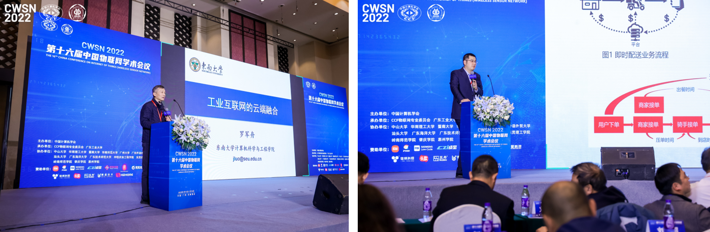 大会共有来自高校和企业的7位特邀嘉宾进行了学术报告。樊文飞做题为“图数据关联分析与万物互联”的主题报告,聚焦大规模图数据关联分析的三个关键问题,并介绍自主研发的大规模图数据分析系统。刘云浩做题为“群智感知计算十年回顾”的主题报告,回顾了群智感知的发展历程及最新研究成果。马建峰做题为“云-网-端协同安全:新一代无线通信的安全范式”的主题报告。小米集团IoT业务部高级总监顾瑶瑶线上做题为“小米全场景交互基础软件平台及开发工具建设”的主题报告,李向阳做题为“工业物联网:智能感知、边缘计算与安全初探”的主题报告;薛泉做题为“面向5G/6G的毫米波收发芯片及封装天线”的主题报告,陈贵海做题为“网络测量新技术及其展望”的主题报告。