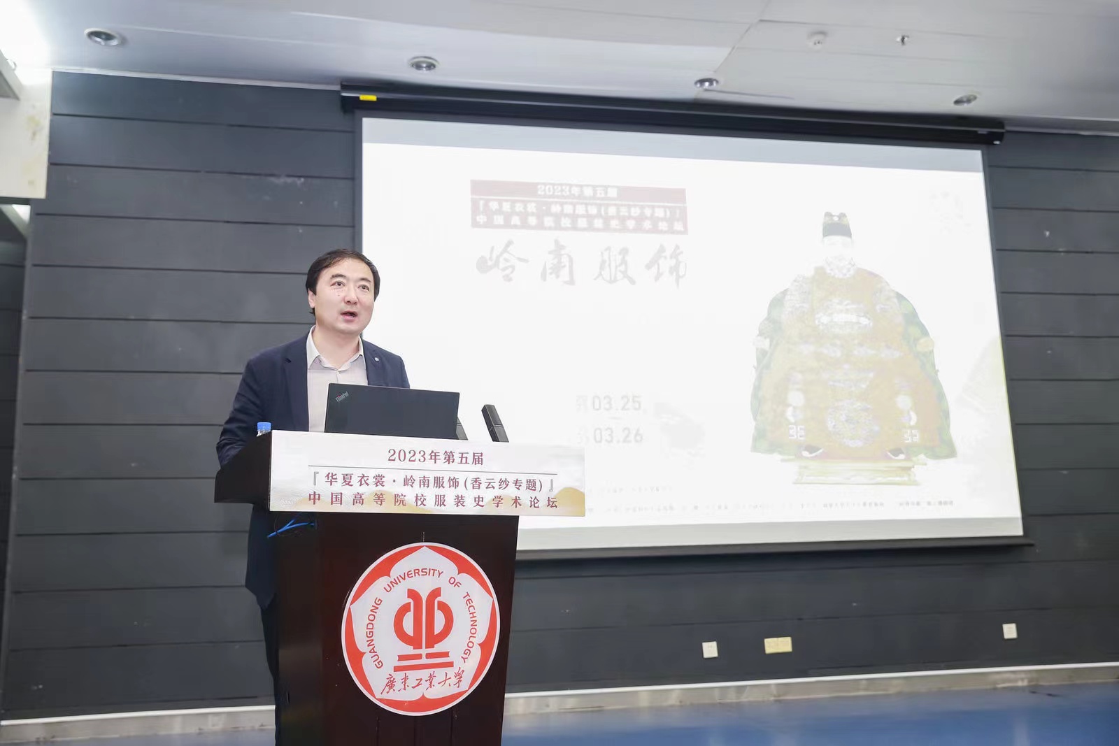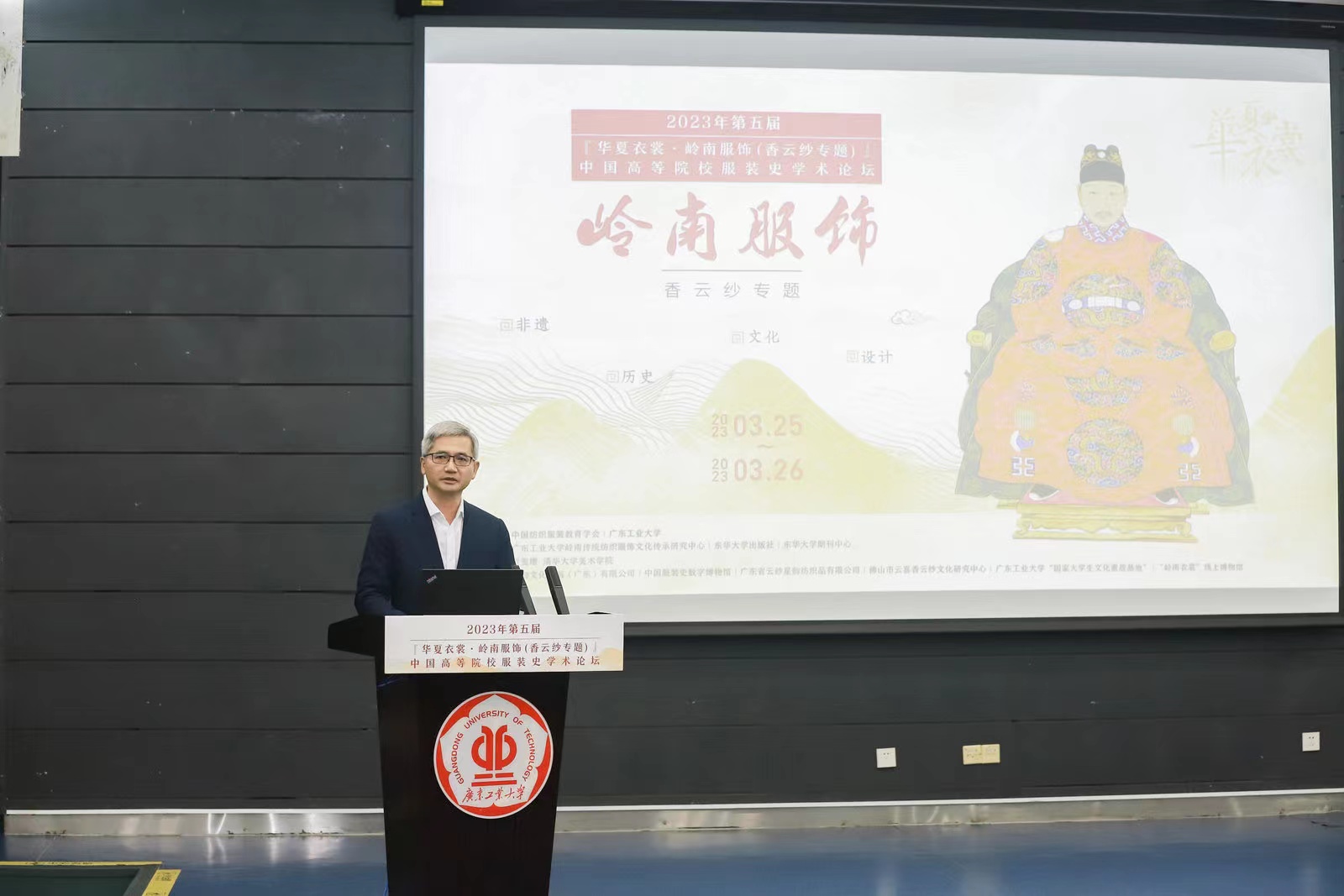 3月25日,第五届“华夏衣裳”中国高等院校服装史学术论坛在线上买球官网(中国)官方网站大学城校区大讲堂圆弧报告厅举行。本次论坛由中国纺织服装教育学会和线上买球官网(中国)官方网站主办,东华大学出版社有限公司、东华大学期刊中心、通识教育中心、广东省决策咨询基地岭南传统纺织服饰文化传承研究中心承办。中国纺织服装教育学会副会长纪晓峰,线上买球官网(中国)官方网站党委常委、副校长陈卓武研究员、东华大学期刊中心主任王克斌、东华大学出版社总编辑周德红、清华大学美术学院李当岐教授在开幕式上致辞,来自清华大学、天津大学、青岛大学、深圳大学、汕头大学、中国服装设计师协会、山东省设计师协会、中法时尚美学、WE未视觉等单位的知名学者、设计师、陈列师,以及全国各纺织服装类学校的老师80多人参加了此次学术论坛。