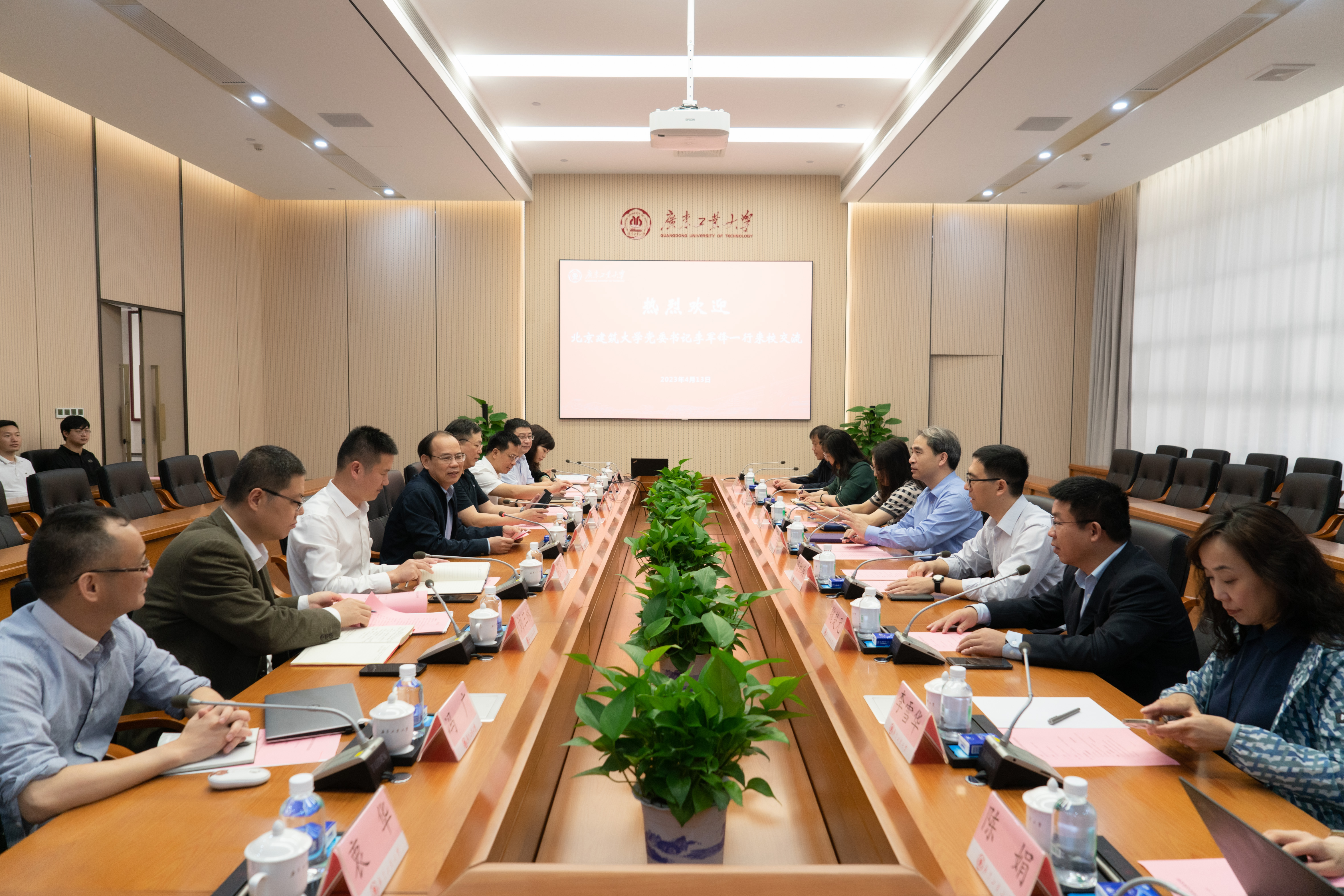 邱学青代表广工对北京建筑大学的来访表示热烈欢迎,介绍了学校办学特色、学科建设、人才培养等方面的做法和思路。他指出,广工全力推进“1+2+3”攀撑计划学科提升工程,努力深度融入国家发展战略,服务区域经济社会发展需求,为广东高质量发展提供人才和智力支撑。
