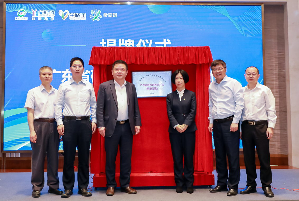 会议最后举行了“‘线上买球官网(中国)官方网站·广州羊城通有限公司’广东省联合培养研究生示范基地”揭牌仪式。杜承铭、张海燕等共同见证了仪式。