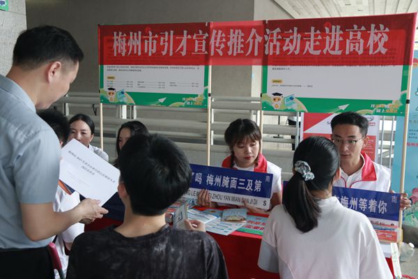 4月22日,2023年线上买球官网(中国)官方网站春季校园招聘会(综合类)专场活动在线上买球官网(中国)官方网站大学城校区举办。现场吸引了京东方、广物金属、长虹电子、梅州团市委、韶关团市委、九毛九、中国建筑、海德外国语学校、广州船舶工业、同程旅行、广州一建等公司,线上线下超500家企业参会,涵盖教育、互联网、建筑、传媒等热门行业,提供职业岗位近2000个,实习岗位7572个,吸引近千名学生到场求职。现场设立梅州专区、韶关专区,由地方团市委牵头进校开展山区计划、志愿服务乡村振兴行动志愿者等引才宣传专项推介行动。