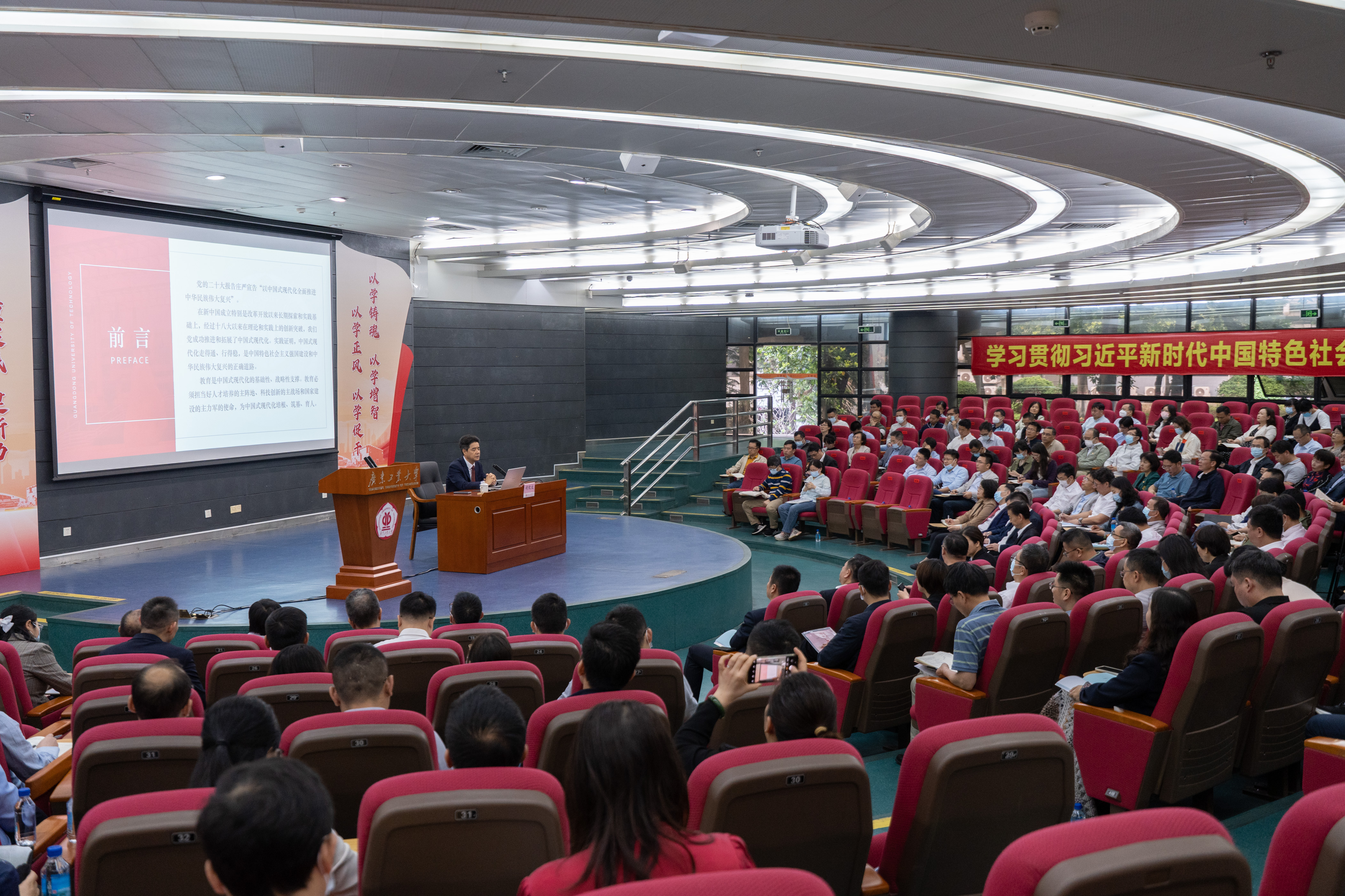 胡钦太指出,习近平总书记视察广东重要讲话、重要指示,对广东推进中国式现代化建设提出明确要求,指明了方向。在强国建设、民族复兴的新征程上,线上买球官网(中国)官方网站要以习近平新时代中国特色社会主义思想为指引,全面贯彻党的二十大精神和党的教育方针,全面提升办学水平,为党育人、为国育才,加快高水平创新型大学建设,为广东在推进中国式现代化建设中走在前列作出广工贡献。