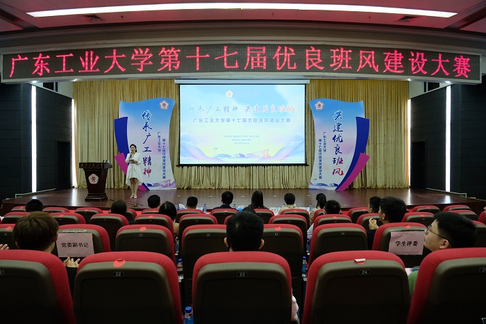 近日,“传承广工精神,共建优良班风”第十七届优良班风建设大赛决赛在大学城校区大讲堂三楼中心报告厅顺利举行。党委办公室、校长办公室,党委组织部,党委宣传部,教务处,学生工作处,校团委等部门相关负责人担任大赛教师评委,各学院党委副书记、辅导员代表、学生代表等400余人参加活动。
