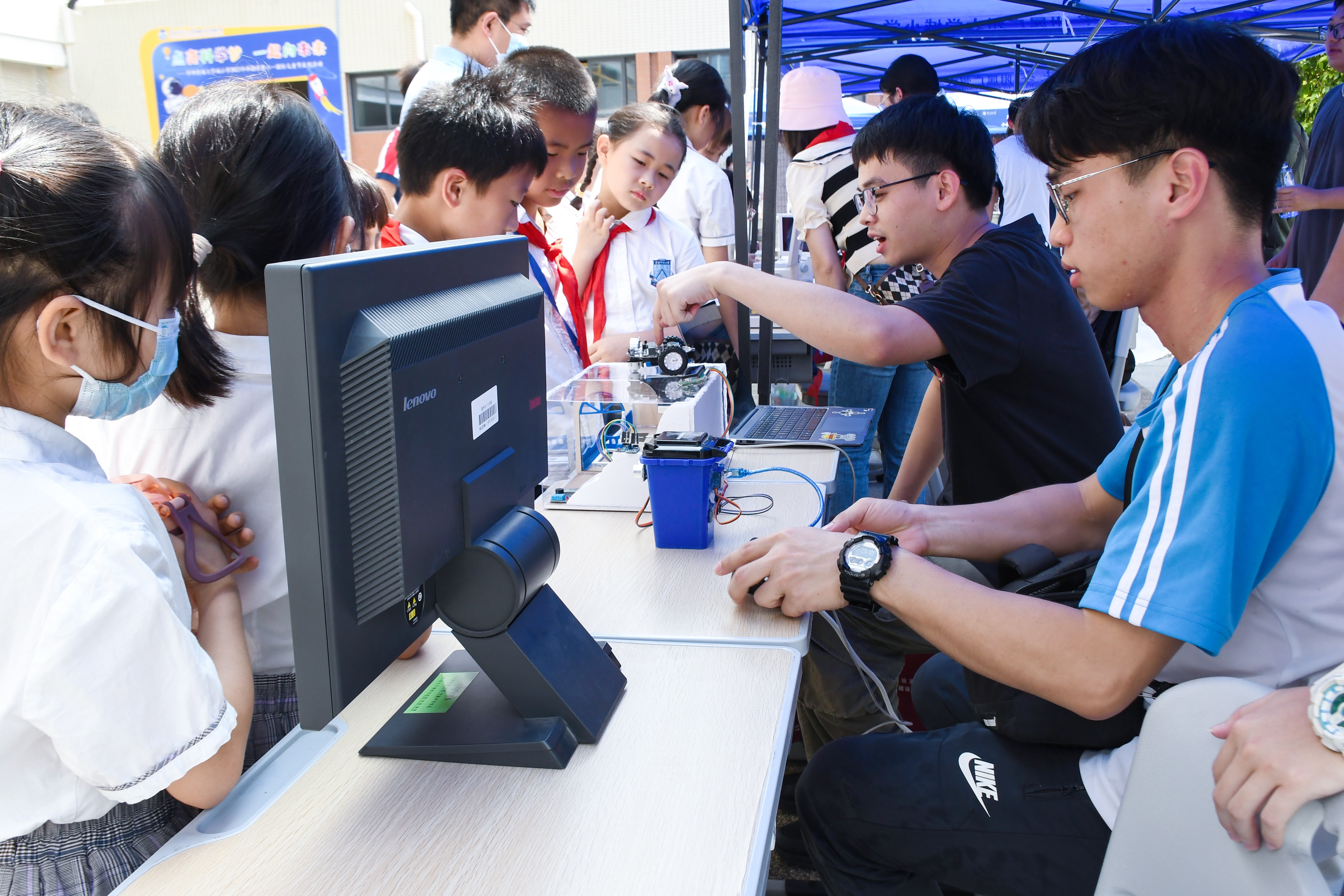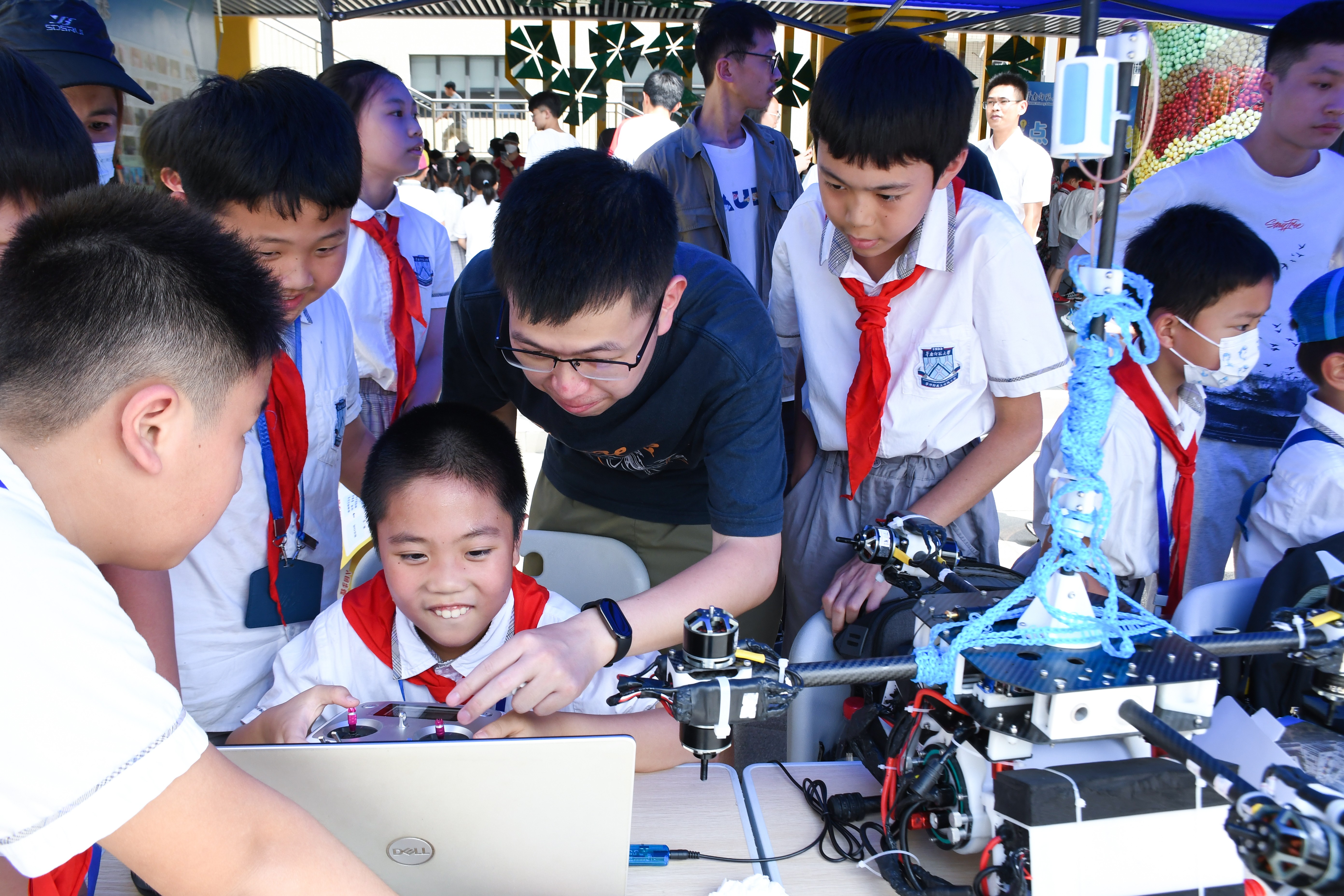 “今天的活动真是太有趣了、太精彩了,我也要跟哥哥姐姐一样自己动手做科创发明,拥有属于自己的技术作品。”小学生们情不自禁感叹道。“广工学生团队带来的科普展示非常有意思,以寓教于乐的互动式体验,在孩子们心中播下探寻科学的兴趣种子,很有意义,希望以后能有更多这样的活动。”学生家长也不禁赞叹道。