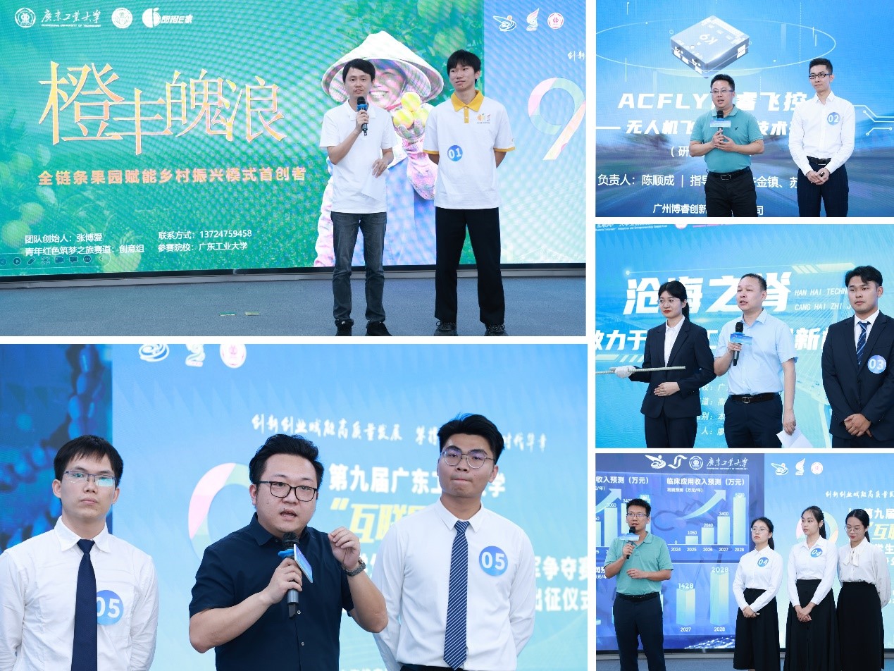 比赛分为路演展示、评委问答、导师拉票三个环节。赛场上,5支参赛队伍逐梦青春、同台竞技,展示了“我敢闯 我会创”的青春风采。师者如光,点亮创业梦想,导师上台为团队加油,为选手鼓劲,尽显了“传道授业解惑”师者本色。经过冠军争夺赛现场激烈精彩的项目路演比拼,最终《纳丝科技——基于静电纺丝制造工艺的微纳载药支架》项目团队脱颖而出,勇夺校赛桂冠,《ACFLY博睿飞控——半开源飞控开拓者》获亚军,《橙丰魄浪——全链条赋能果园助力乡村振兴新模式》《沧海之脊——致力于海洋工程专用新材的研发》《“肠”治久安——结直肠癌早诊早治一体化解决方案创新者》项目获得季军。评委代表老师认为参赛队伍选题围绕上天入海、乡村振兴和生命健康等方向,尽显广工坚持顶天立地的格局和家国天下的情怀。
