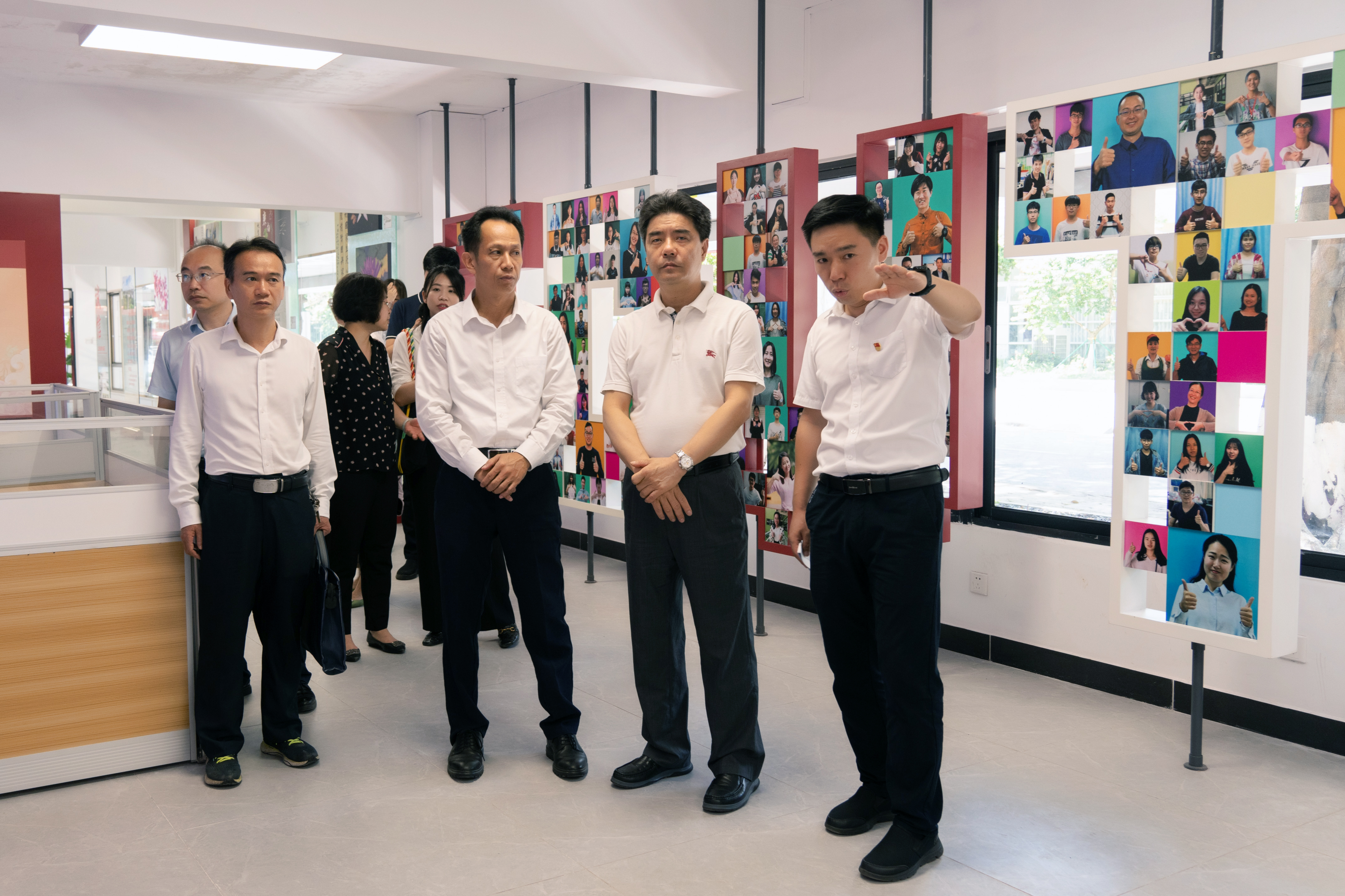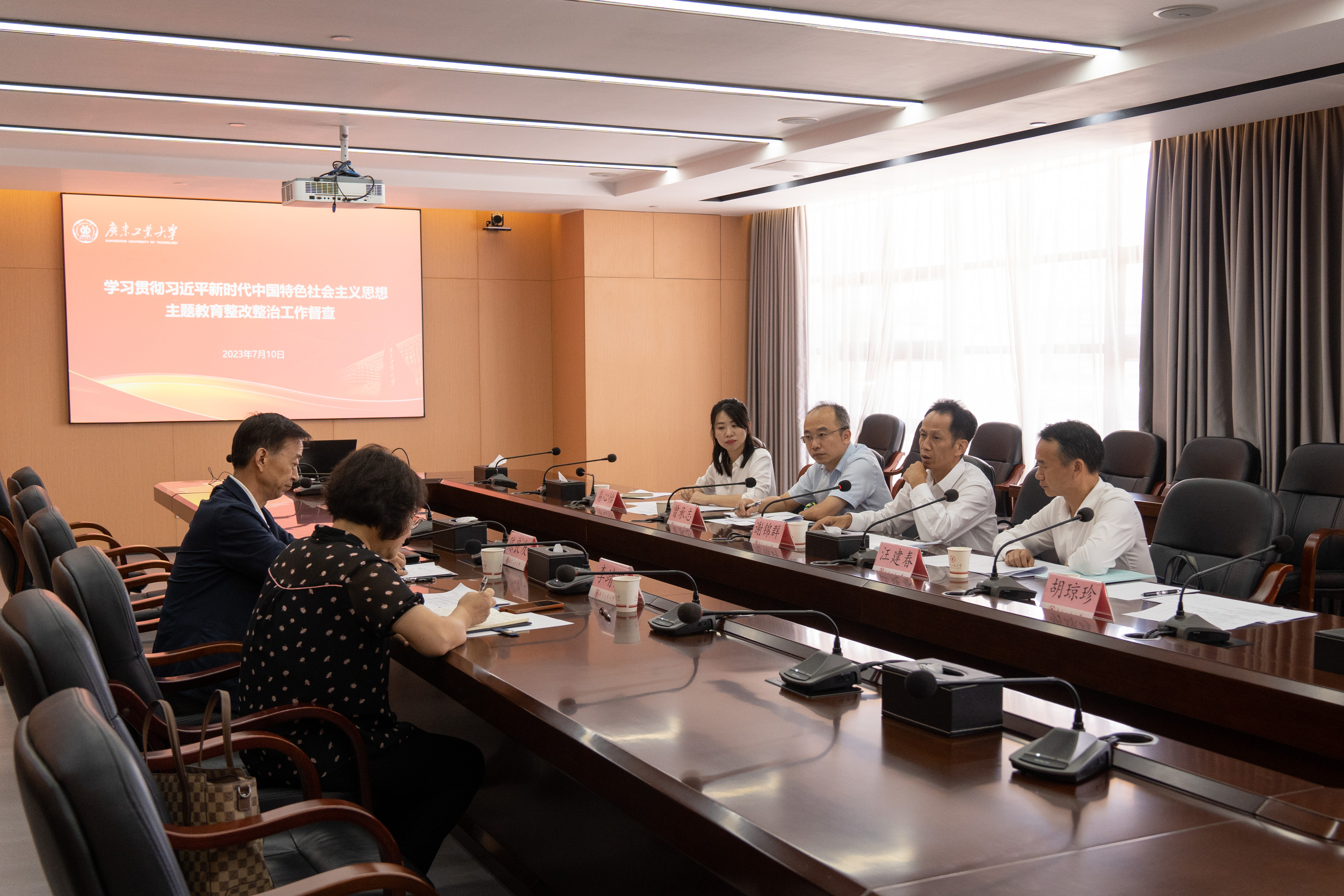 在学校大学城校区生活西区“社会主义核心价值观体验馆”,省委主题教育办公室整改整治组、指导组一行听取了“一站式”学生社区服务大厅建设进展,推进“校园思政空间与学生成长服务供给受限问题”的专项整治项目进程。在学校行政楼702会议室,指导组一行查阅了学校主题教育整改整治工作相关材料。