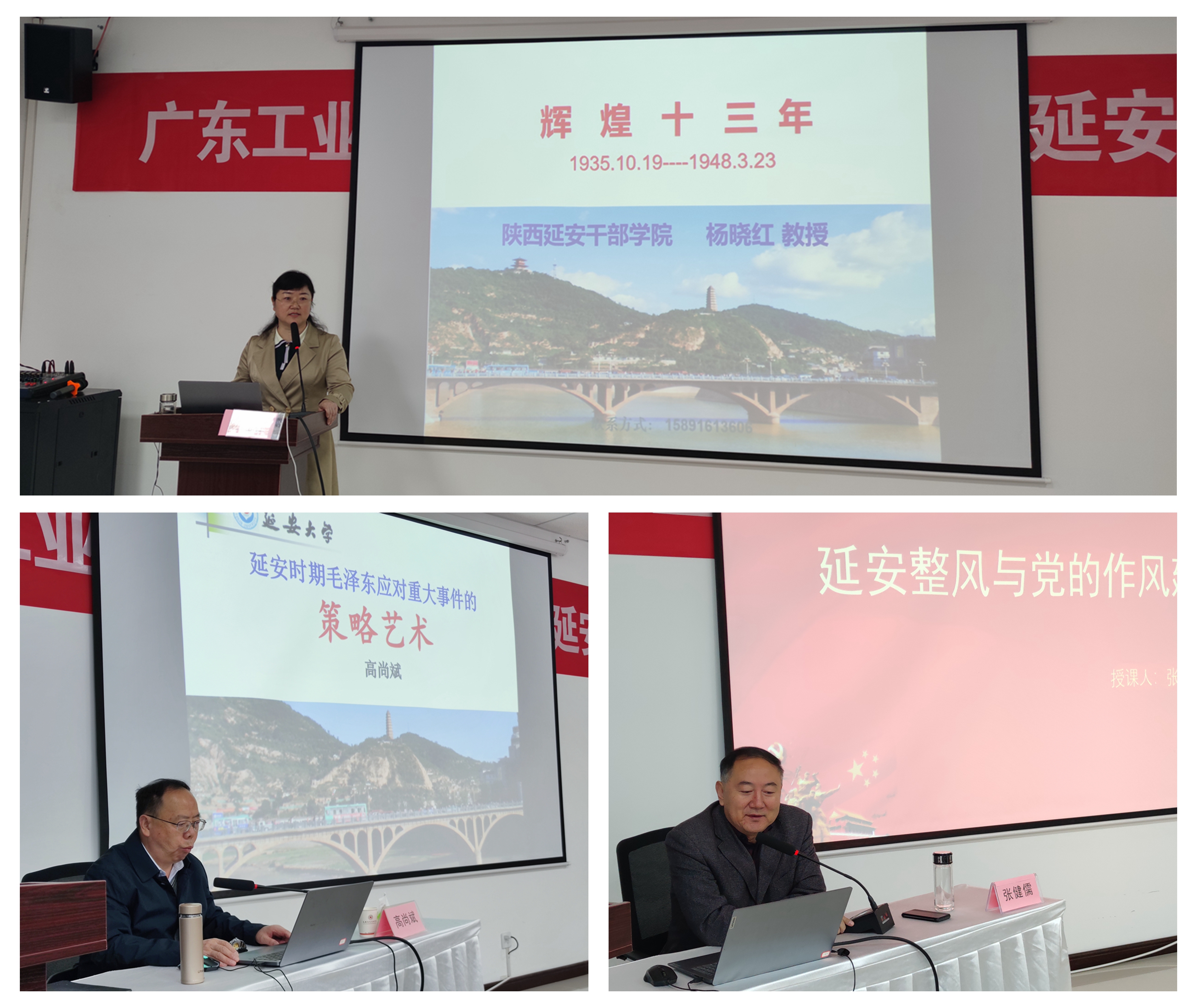 专题讲座中,陕西延安干部学院副院长杨晓红教授以《党中央在延安十三年》为题,深入细致地讲述了1935年到1948年党中央在陕北延安生活、战斗的十三年辉煌历程、辉煌业绩和经验启示。延安大学中共党史研究院院长高尚斌教授讲授《延安时期毛泽东处理重大事件的策略与艺术》,从方法论的角度探讨和分析了,延安时期毛泽东同志如何把战略的坚定性与策略的灵活性相统一,成功应对西安事变、皖南事变等一系列重大事件的斗争艺术和气度谋略。延安革命纪念馆原馆长张建儒教授讲授《延安整风与党的作风建设》,从必要性和可能性、主要内容和发展历程、方针和方法、成绩与意义以及对党的作风建设的启示五个方面,对延安整风与党的作风建设进行了深入浅出、多维度深层次的讲解。