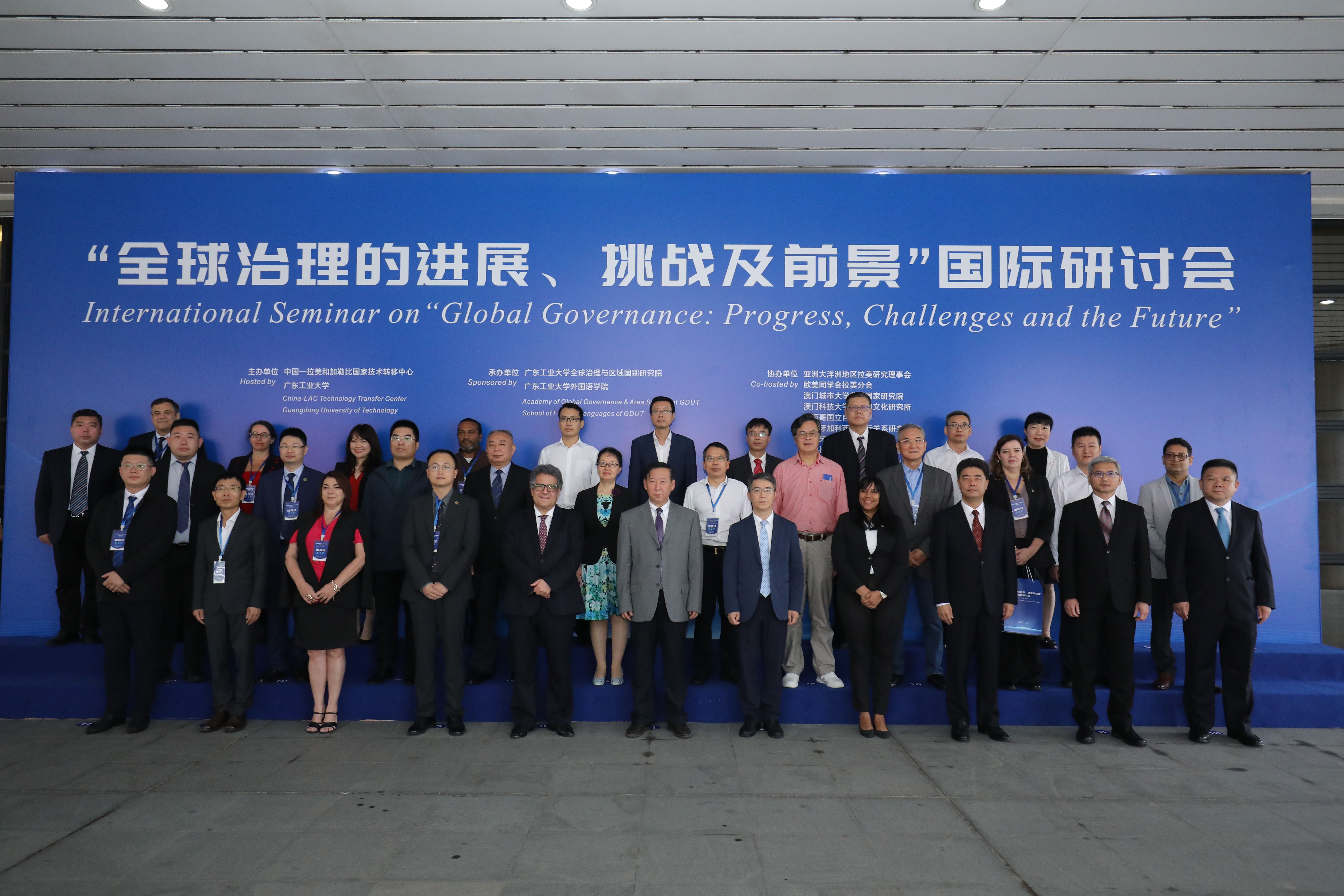 近日,由中国——拉美和加勒比国家技术转移中心、线上买球官网(中国)官方网站主办,线上买球官网(中国)官方网站全球治理与区域国别研究院、线上买球官网(中国)官方网站外国语学院承办的“全球治理的进展、挑战及前景”国际研讨会在学校大讲堂三楼中心报告厅成功举办。中共中央对外联络部原副部长于洪君,广东省科学技术厅副厅长梁勤儒,学校党委书记胡钦太,党委副书记陈卓武,党委常委、副校长杜承铭及相关部处领导出席会议。巴西联邦共和国驻穗总领事艾伦•科埃略•德塞洛斯、古巴共和国驻穗总领事丹妮斯•因凡特、苏里南共和国全民议会议员王传瑞、中国社会科学院拉丁美洲研究所副所长袁东振、肇庆学院副校长胡文涛等近百名国内外专家学者参加本次会议。开幕式由陈卓武主持。