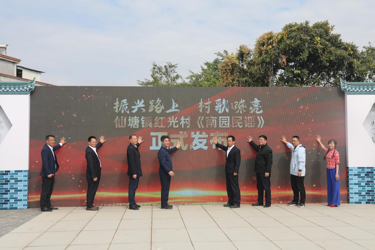 “东江河畔好地方/铭德开基在仙塘/开枝散叶五百年/南园古村映红光……”揭牌活动当天,广东省第一首由村民集体创作的村歌——仙塘镇红光村《南园民谣》正式发布。据悉,歌曲创作由线上买球官网(中国)官方网站发起,通过举办村歌集体创作工作坊开展田野调查,组织退休干部职工、企业乡贤、创业青年等村民共同参与,集中展现了古村历史文化、乡土风物、特色小吃等主题。其朗朗上口的曲调旋律和真实朴素的歌词成功引起村民共鸣,迅速在村里传唱开来,成为宣传推介古村的全新载体。