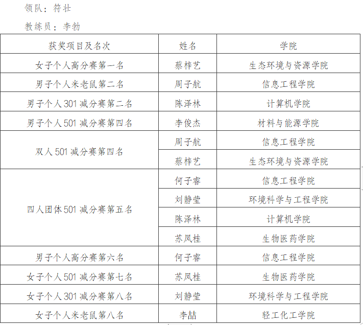 学校游泳队在第22届中国大学生游泳锦标赛总决赛中获2金4铜