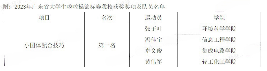 学校代表队在广东省大学生啦啦操锦标赛勇得第一名