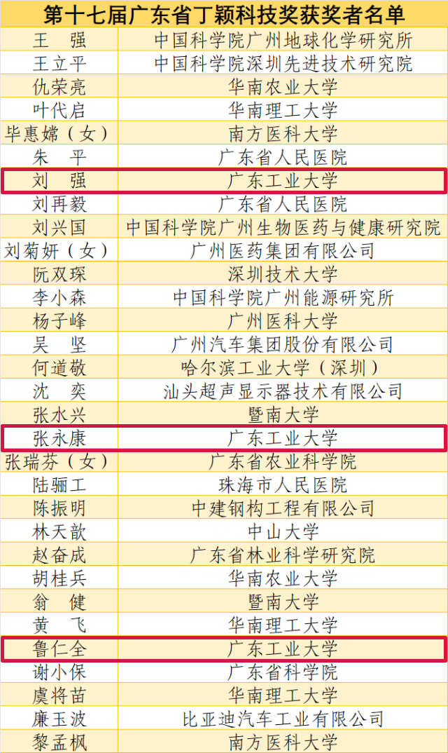 获得第十七届广东省丁颖科技奖的广工教授鲁仁全、刘强、张永康在大会开幕式上受到表彰。