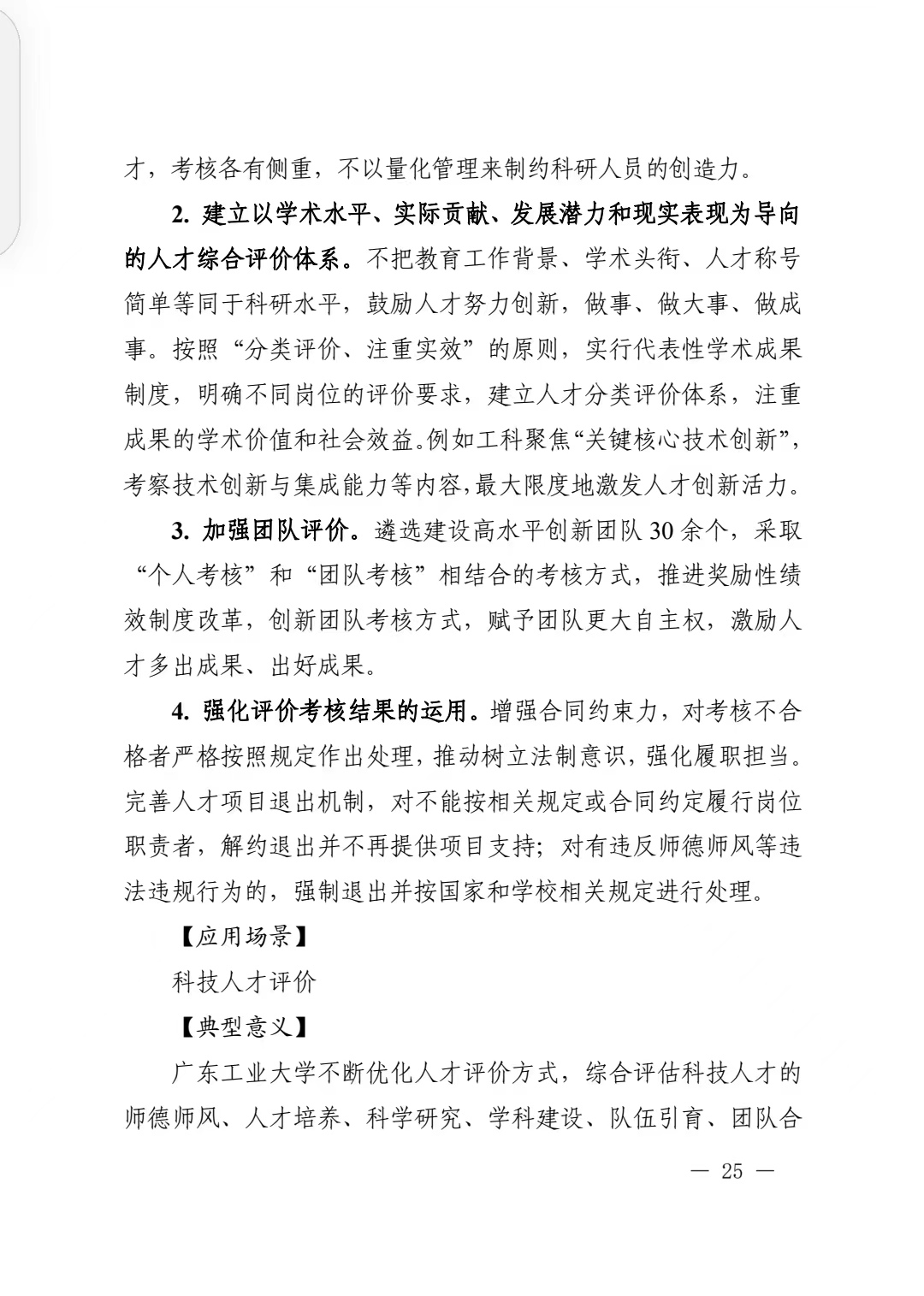 在全省实施高等教育“冲补强”提升计划的背景下,学校坚持破“四唯”,推进人才分类考核评价,加大人才供给力度、加快人才成长速度、加大人才建设强度,建立健全人才分类评价体系,在工科领域聚焦关键核心技术创新,考察技术创新与集成能力,创新团队考核方式,赋予团队更大自主权,为学校快速、高质量发展提供了强有力的人才支撑。