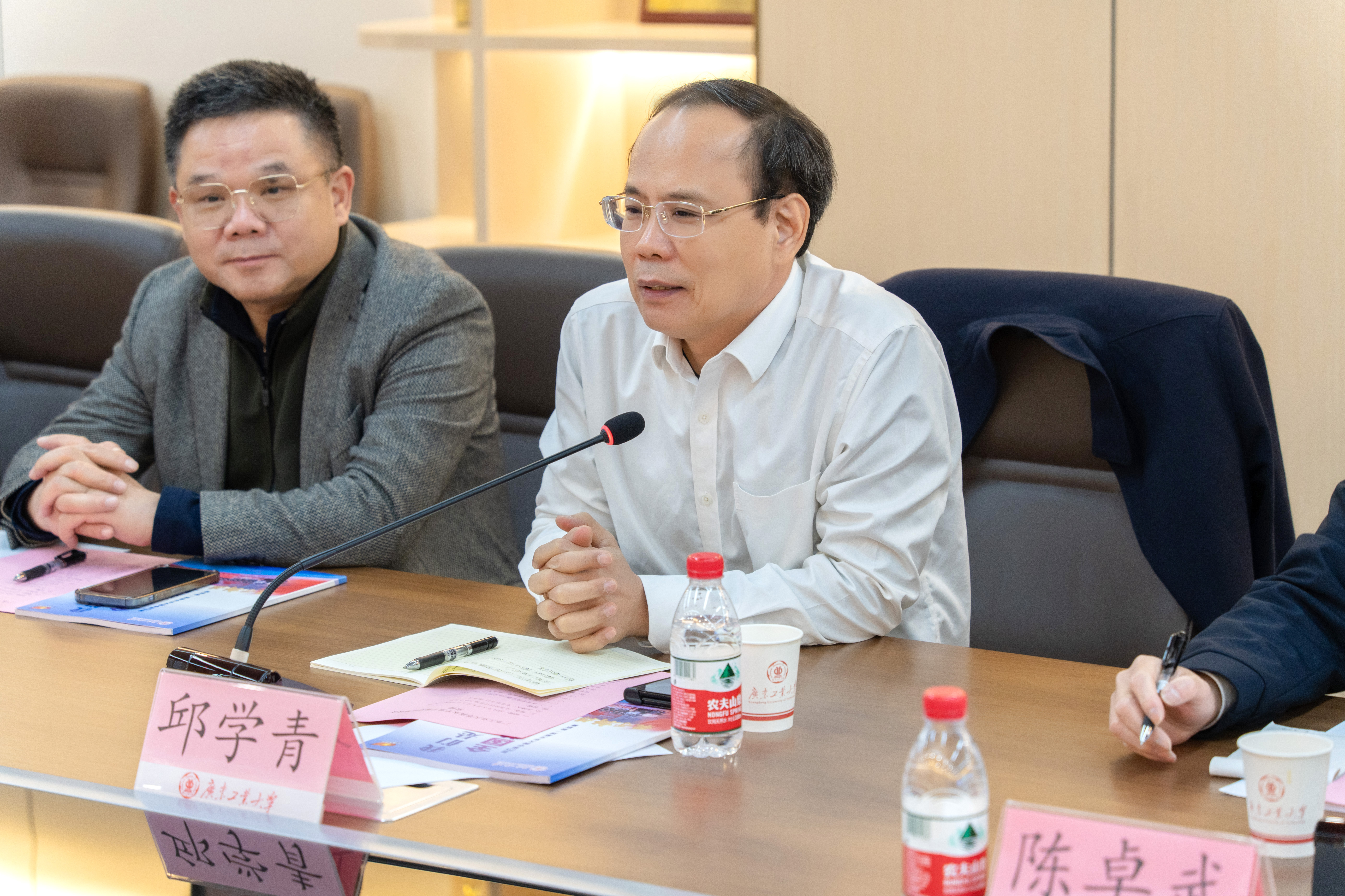邱学青认真听取体育学院、篮球队教练团队的汇报以及队员代表发言,与大家共同分析目前球队的现状和备战对策。他对大家的辛苦付出表示感谢,对篮球队提出殷切希望:一要继续传承发扬好广工男篮精神,敢打敢拼,不断丰富和发展广工男篮精神内涵实质;二要继续刻苦训练,打牢体能基础,练好“真功夫”,打好每一场比赛;三要“五育并举”,做到全面发展,不断提升自身综合素养;四要以身作则,结合自身经历讲好广工故事,讲好体育运动故事,积极承担宣传广工文化、广工特色、广工精神的责任,做广大青年学子的榜样。