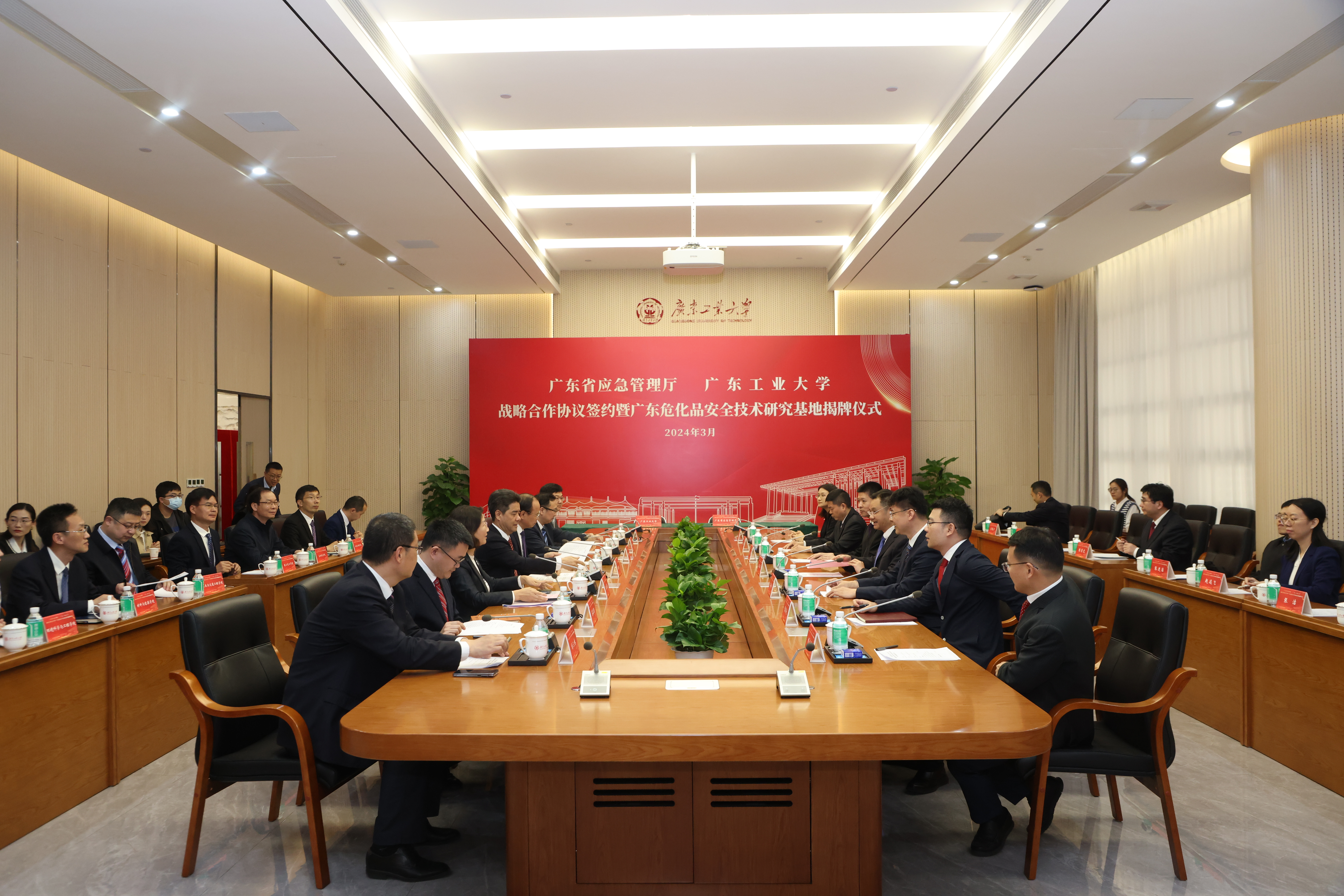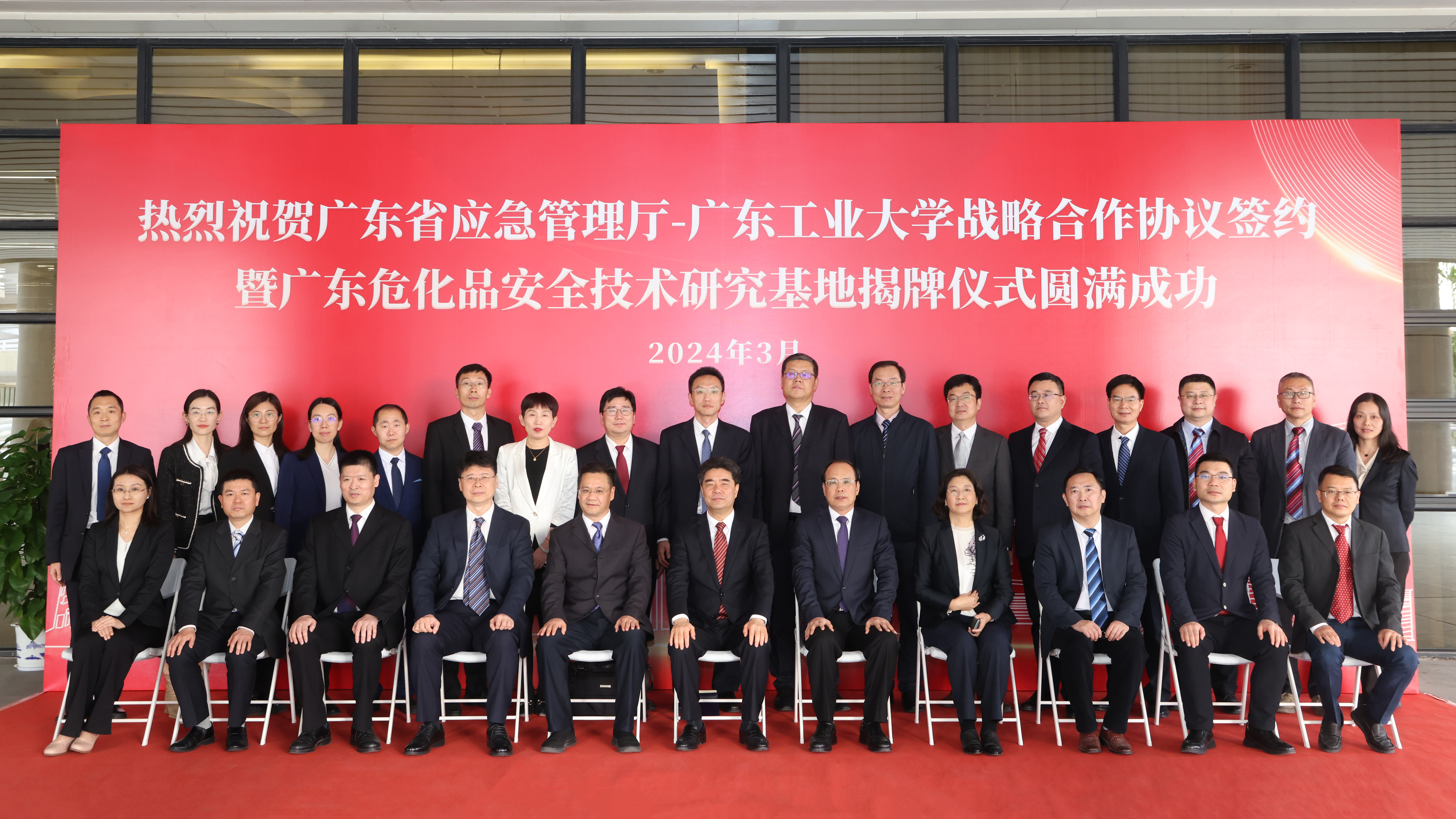 学校发展规划处、科学研究管理部、研究生院、人事处、机电工程学院、自动化学院、轻工化工学院、土木与交通工程学院、材料与能源学院、环境科学与工程学院、生态环境与资源学院,广东省应急管理厅规划财务处、危险化学品安全监管处、科技和信息化处、人事教育处,省安全生产科学技术研究院等相关负责同志参加仪式。