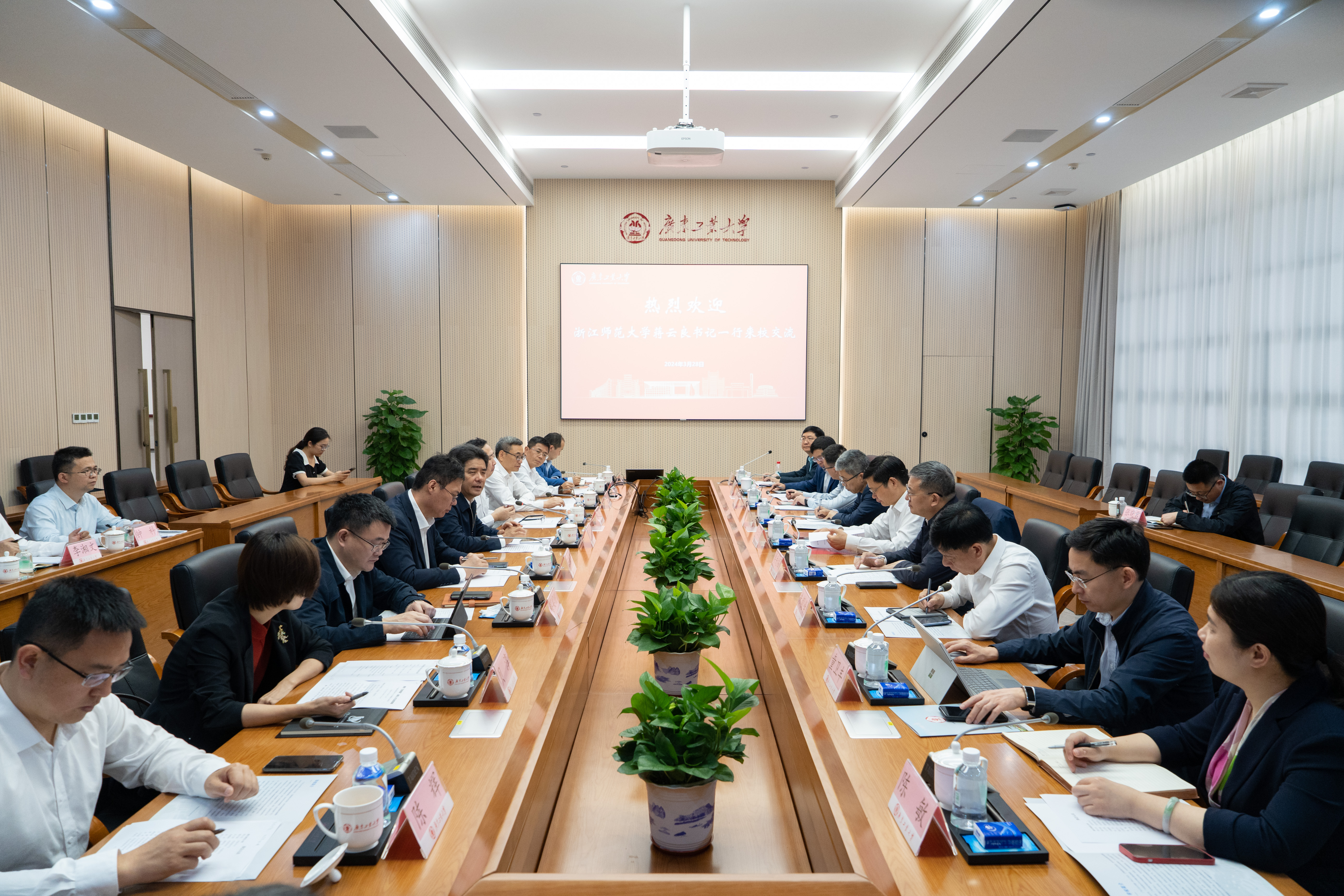 胡钦太对浙江师范大学一行来访表示欢迎,并介绍了学校的办学历程、人才培养、学科建设、社会服务、“1+2+3”攀撑计划学科提升工程(下简称“1+2+3”攀撑计划)等方面的办学经验。他强调,广工以国家“双一流”建设为目标牵引,以“1+2+3”攀撑计划为重要抓手,人才培养、科技创新、学科建设、师资队伍、国际合作五位一体推动高水平创新型大学建设。他表示,浙江师范大学深入实施特色化、国际化、区域化、协同化的发展战略,为国家和浙江经济社会发展做出了积极贡献,期待两校加强交流、增进往来,助力双方高质量发展。