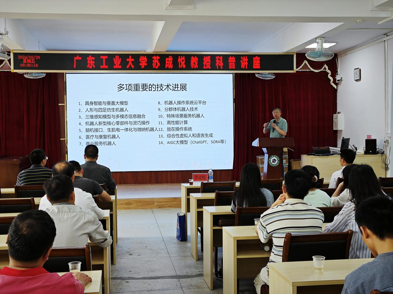 郁南县特邀学校物理与光电工程学院苏成悦教授以“创新、体验、快乐、成长”为主题,为全县青少年科技创新竞赛辅导老师做了人工智能前沿动态的科普报告,并与大家围绕指导团队和参赛经验等进行探讨。会后,双方就青少年科技创新大赛的选题、科学合理的实验方案、评审关注要素等问题进行了交流。
