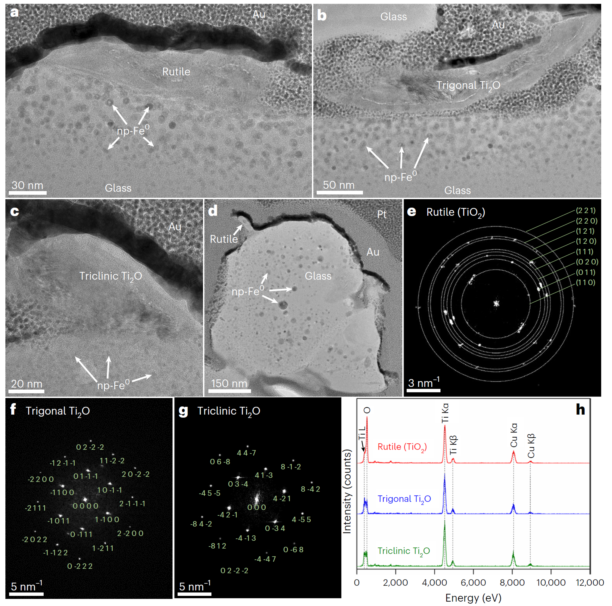 嫦娥五号月壤中发现的金红石(TiO2)、三方结构Ti2O(Trigonal-Ti2O)和三斜结构Ti2O(Triclinic-Ti2O)3种Ti纳米矿物