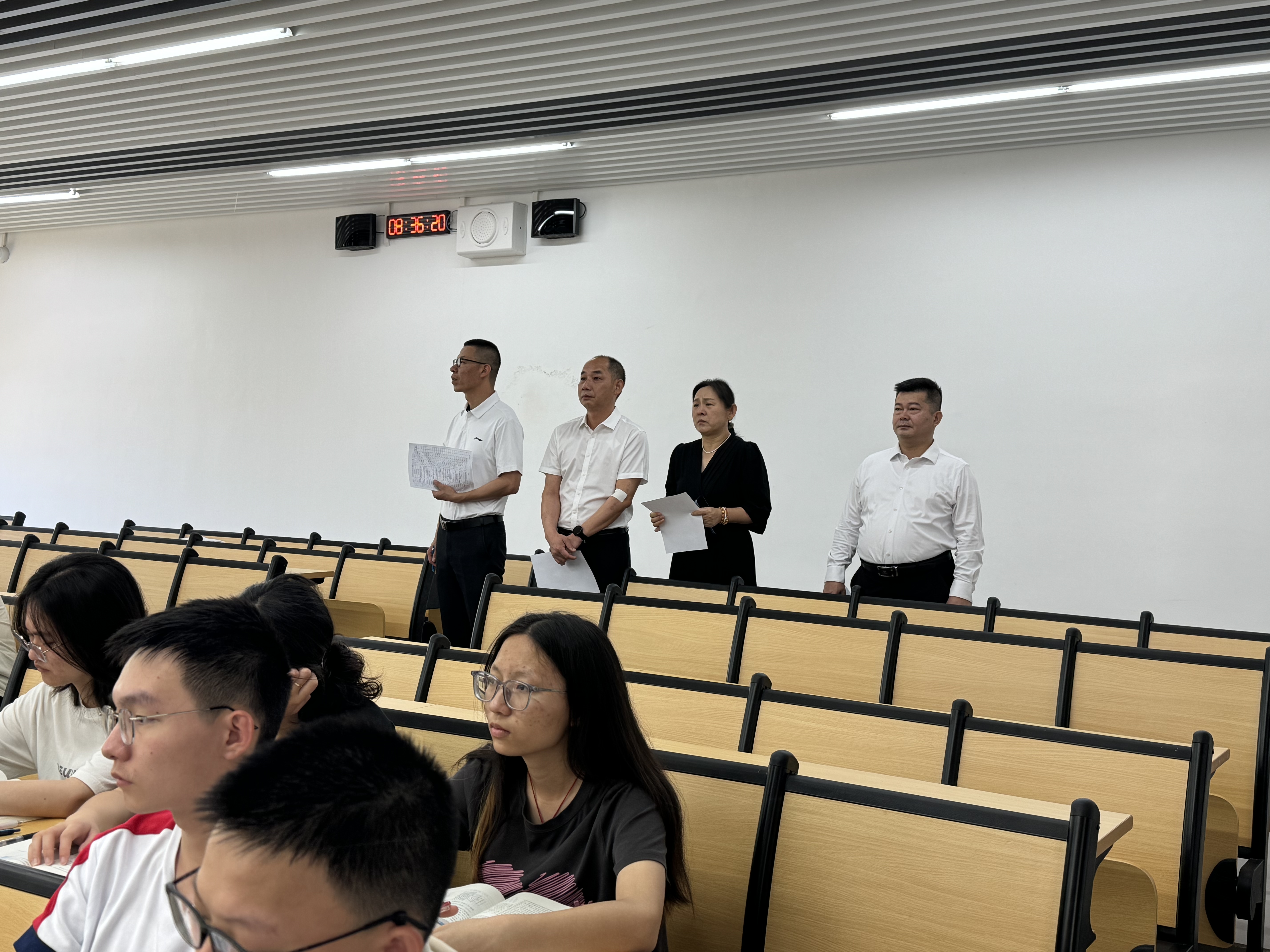 5月6日早,学校党委副书记陈卓武,党委常委、副校长杜承铭、王成勇,副校长余林,党委常委、副校长王振友深入教学一线,对节后第一天教学情况进行检查。教务处、党委学生工作部、研究生院、总务部、网络信息与现代教育技术中心、本科教学质量评估与建设中心等相关部门负责人陪同检查,揭阳校区同步进行自查。