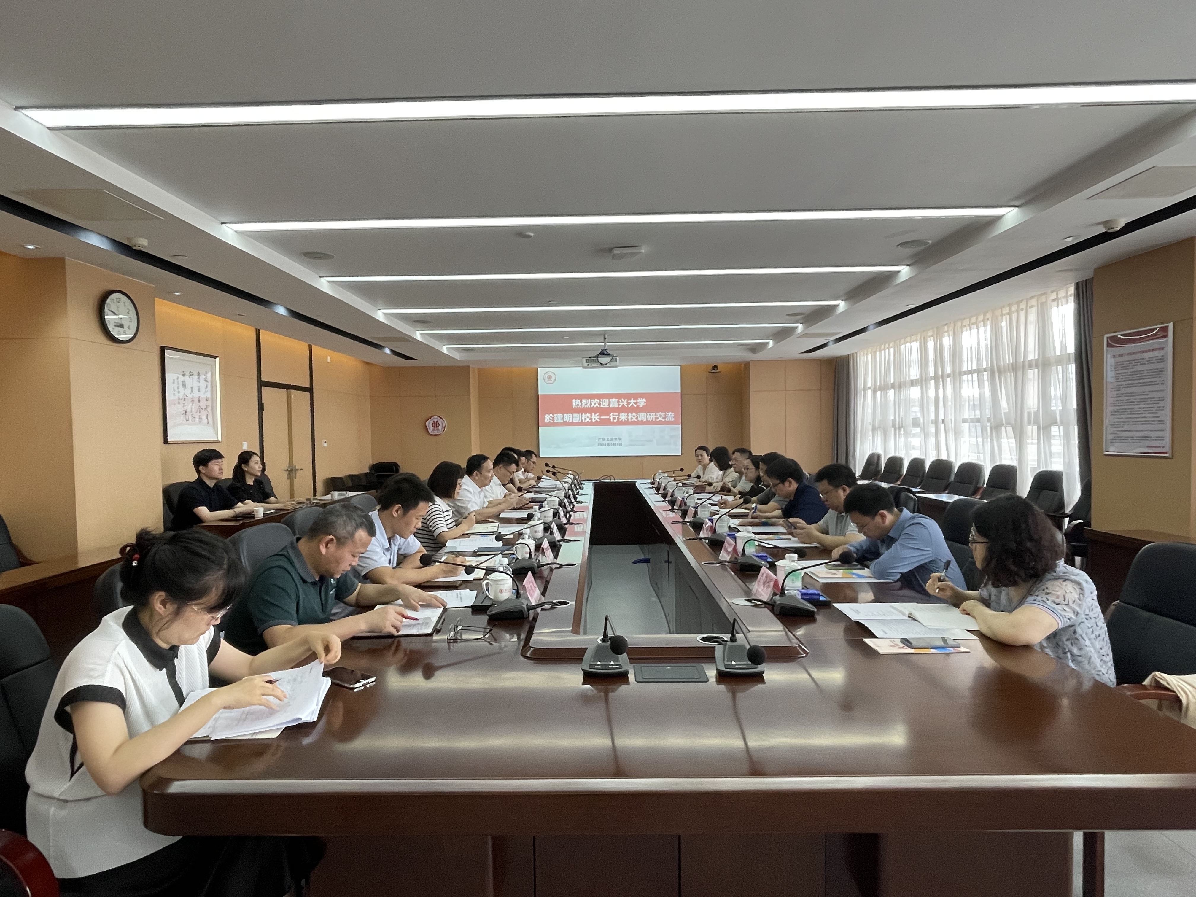 於建明对学校的热情招待表示衷心感谢。他对广工近年发展趋势、及学科建设方面取得的显著成果给予了高度评价,介绍了嘉兴大学的红色发展历程、办学特色以及未来办学方向。