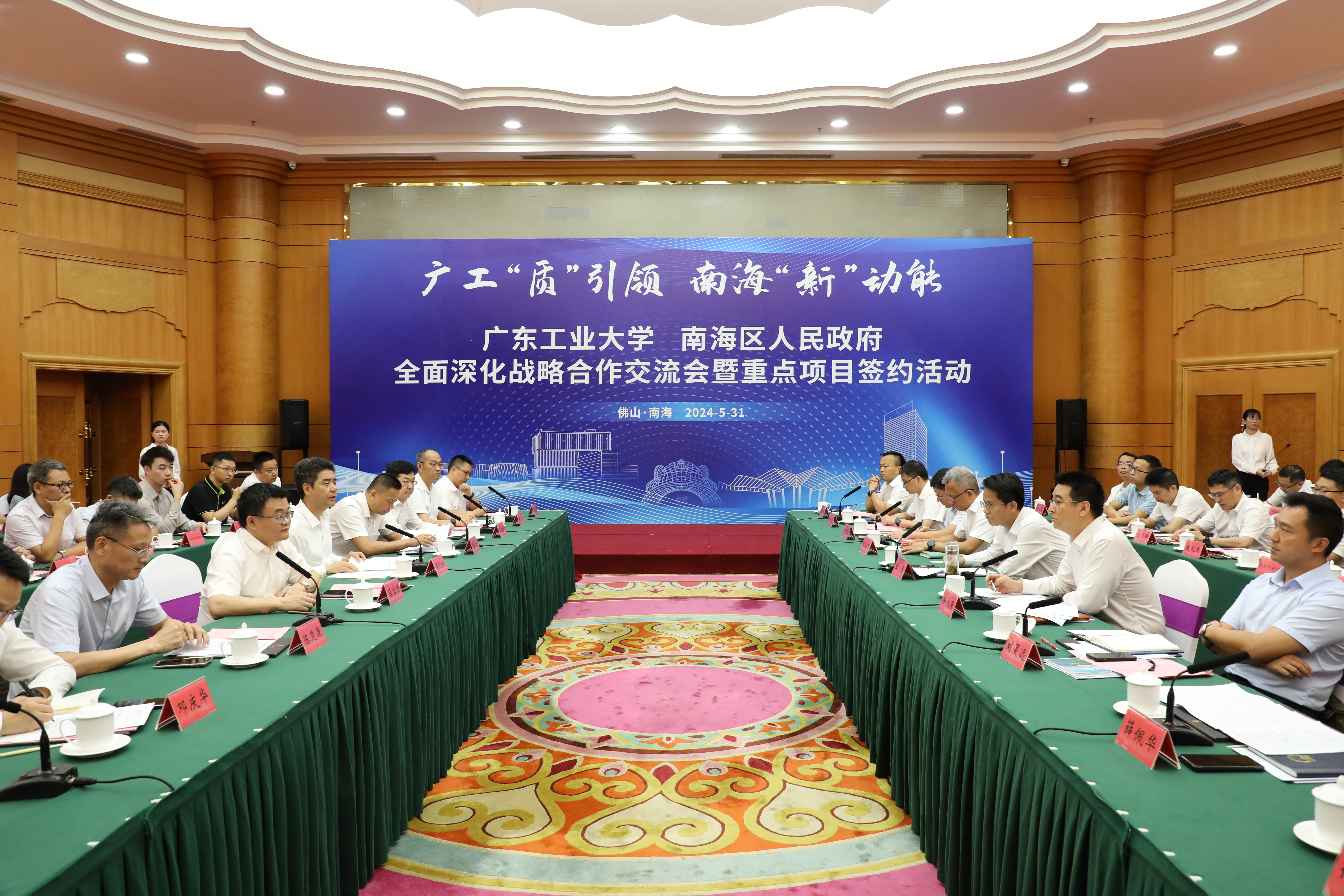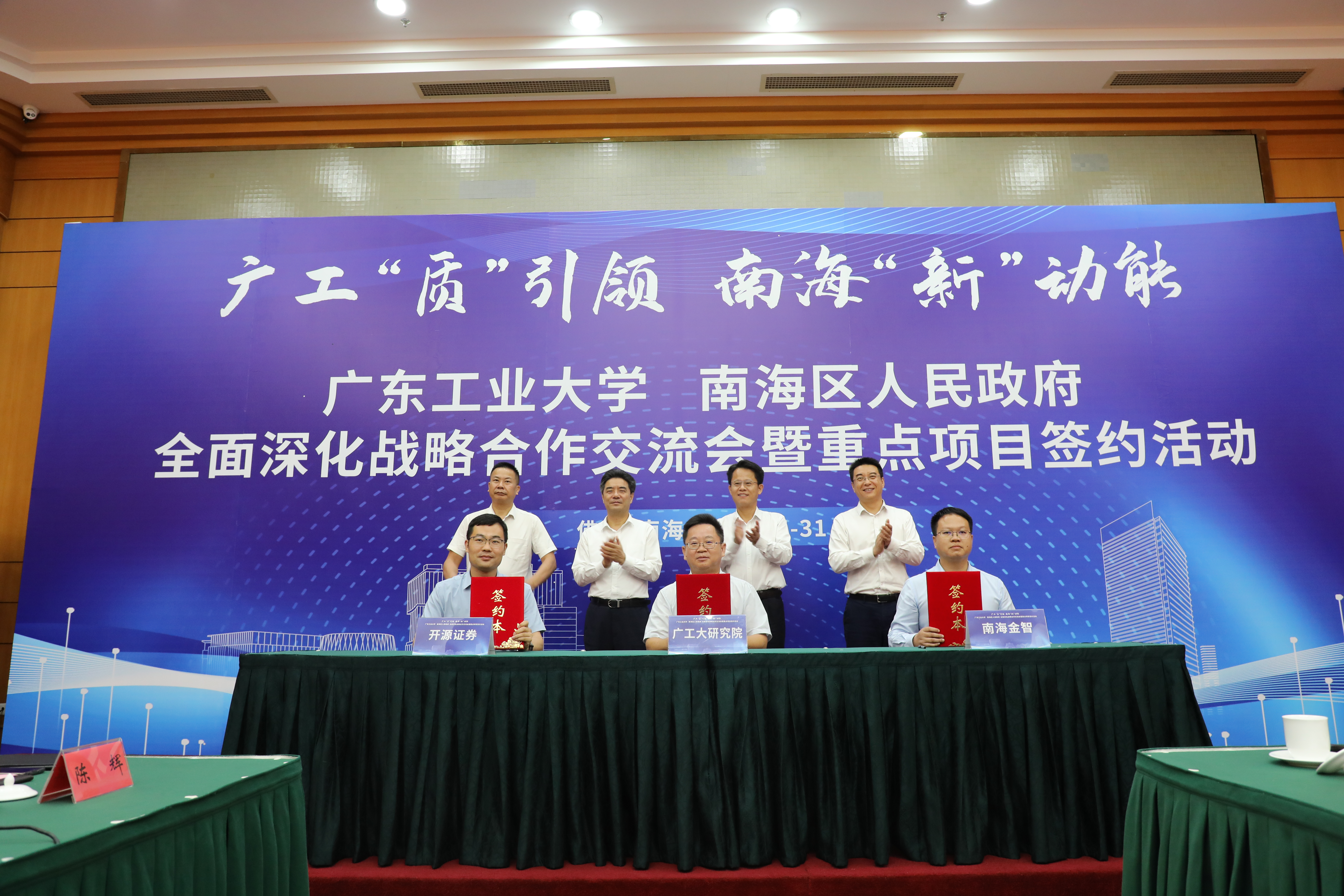5月31日下午,线上买球官网(中国)官方网站(以下简称“广工”)、南海区人民政府全面深化战略合作交流会暨重点项目签约活动在佛山南海区举办。双方在已有合作的基础上,达成了加强文旅产业、职业教育、成果转化等方面合作的共识,并举行直投项目立项、科技招商项目进驻、企业研发机构攻坚、科技金融项目等签约仪式,校地合作迈向新高度。