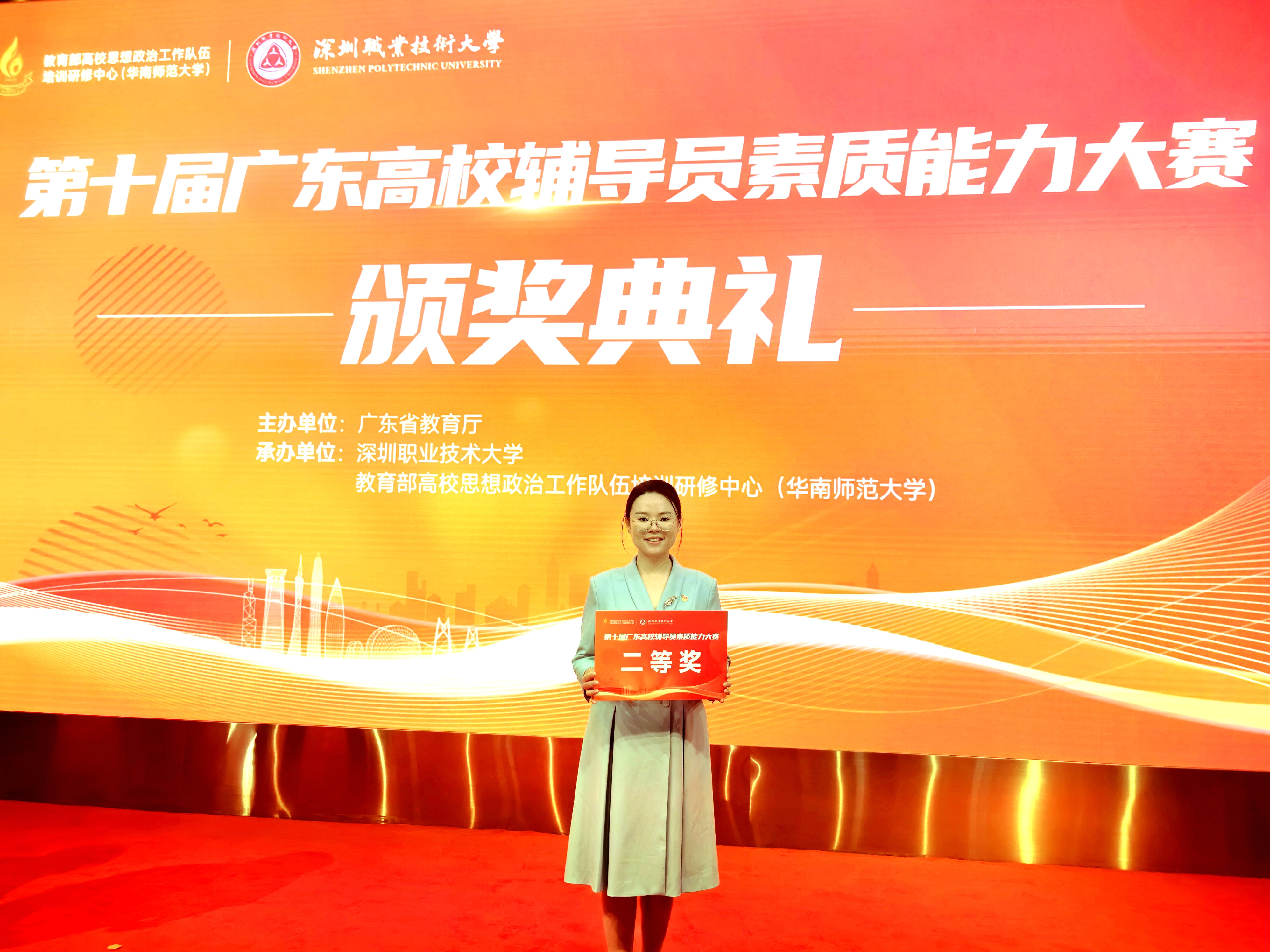 5月29日至31日,由广东省教育厅主办,教育部高校思想政治工作队伍培训研修中心(华南师范大学)、深圳职业技术大学共同承办的第十届广东高校辅导员素质能力大赛在深圳职业技术大学举行,共有来自全省130多所高校的辅导员齐聚一堂、同场竞技。我校选派的自动化学院辅导员何嘉欢荣获大赛二等奖,展现出我校辅导员队伍较好的精神面貌、专业水平与综合素养。