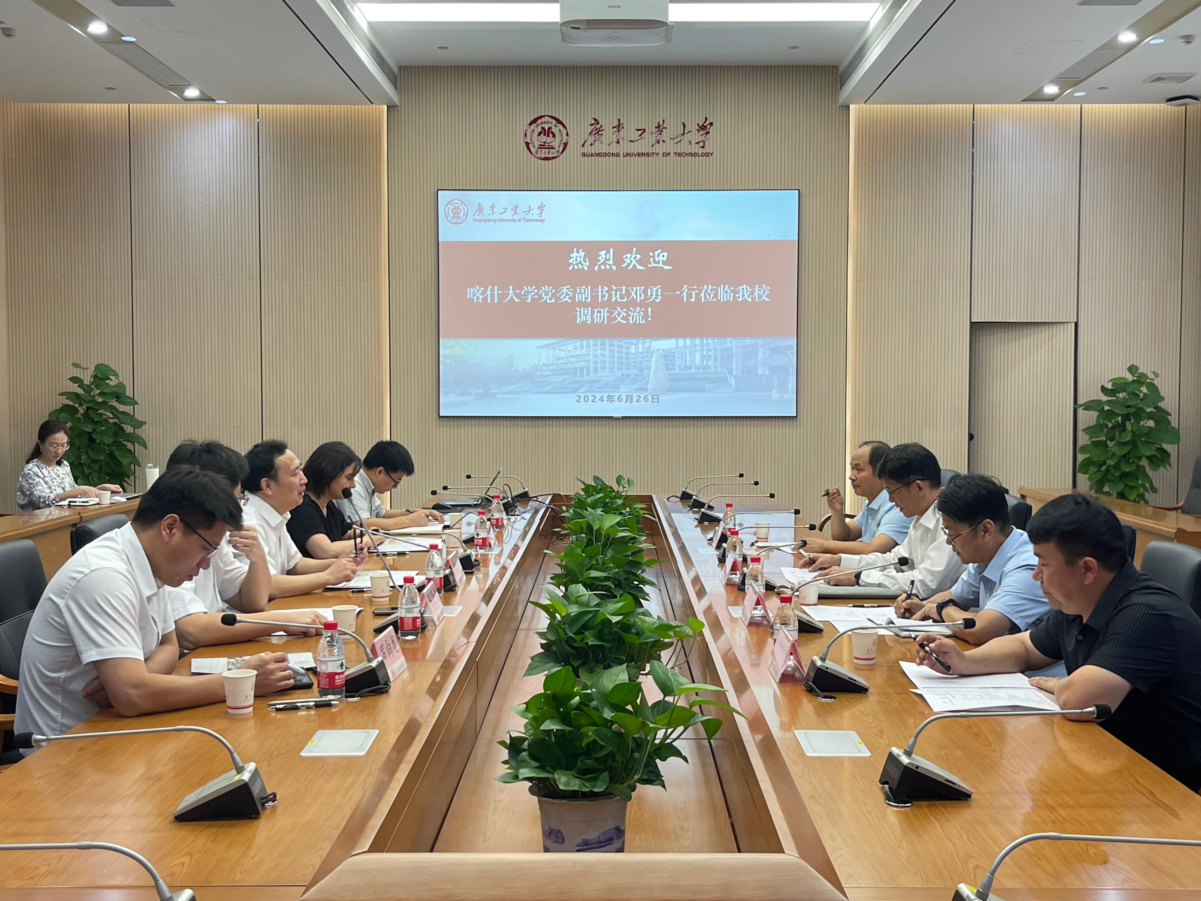 邓勇代表喀什大学对广工的对口支援表示诚挚感谢,对广工取得的成绩给予了高度评价。并表示一定紧抓机遇,依托广工在化工、电气工程、新能源等学科优势,优化学科布局,加快推进喀什大学工科发展。