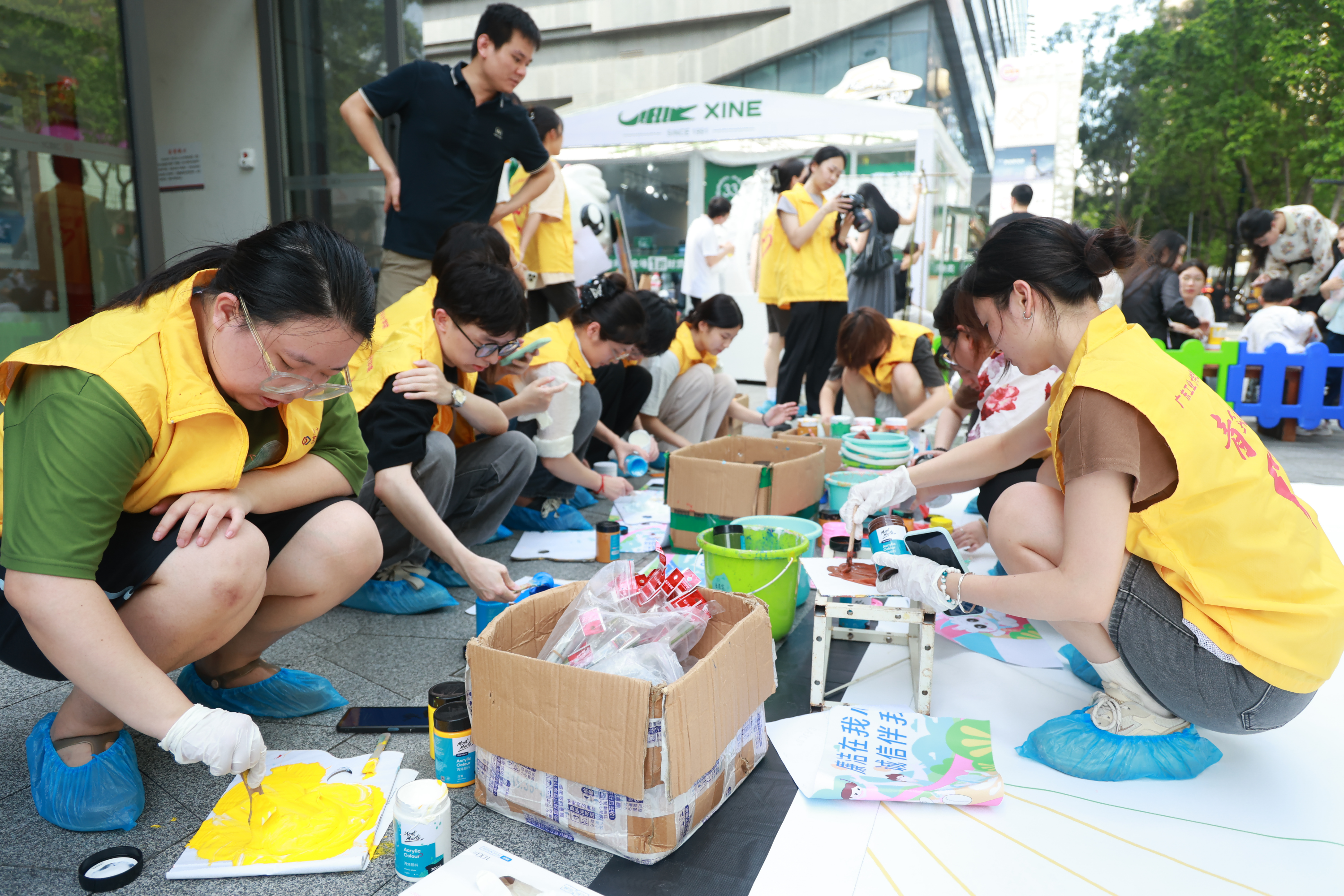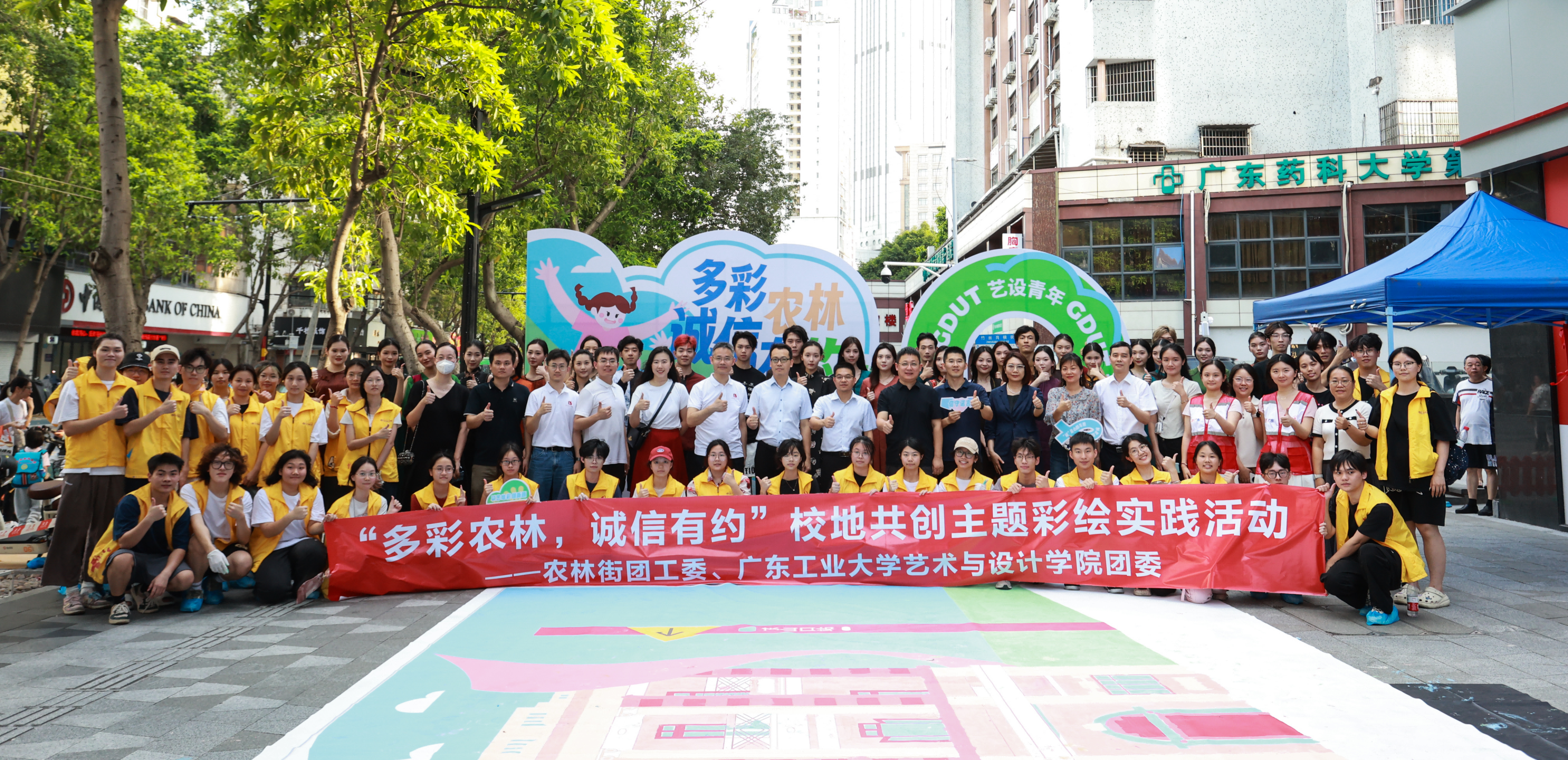 “廉洁在我心,诚信伴我行”,100平米的主题巨型油画布平整展开,线上买球官网(中国)官方网站艺术与设计学院的青年志愿者们邀请街坊群众和学生共同创作!前期专业志愿者们已历时2个月在农林下路绘制“诚信有约”主题墙绘。本次巨幅创作将安装在农林街道诚信广场墙面,融入诚信彩绘的缤纷色彩。传递诚信“好声音”,释放廉洁“正能量”,激活多彩农林诚信建设“青动力”。