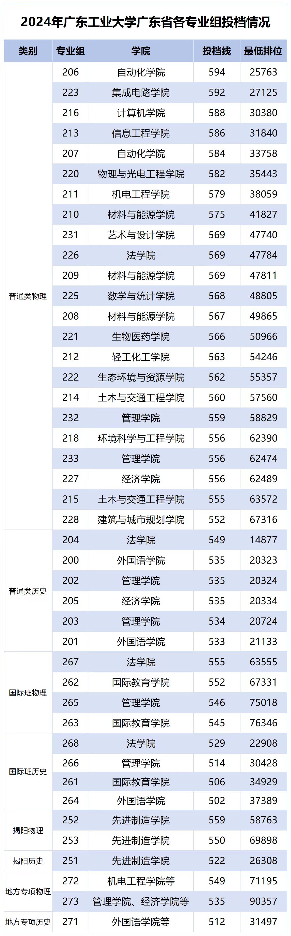 7月18日,广东省本科批次普通类正式投档。2024年线上买球官网(中国)官方网站在广东省招生计划数为8800名,最终实际投档8828名。广工在省内招生继续保持良好态势,物理类最低分552,最低排位67316;历史类最低分533,最低排位21133(不含国际班、揭阳校区及地方专项),优质生源充足,生源质量稳中有升,绝大部分专业组投档分提升。