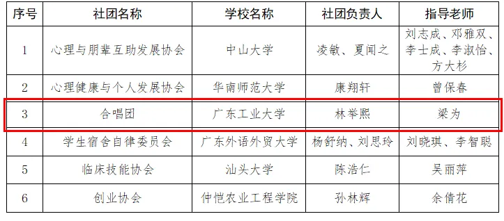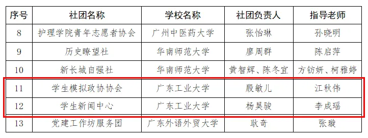 近日,广东省教育厅公布2023年广东高校学生社团建设优秀成果征集活动结果,广工共获奖5项。其中,学生创业俱乐部获“优秀学生社团”奖项,学生模拟政协协会、学生新闻中心获“优秀学生社团提名奖”,合唱团获“优秀学生社团入围奖”,《洪流》获优秀学生社团活动案例二等奖。