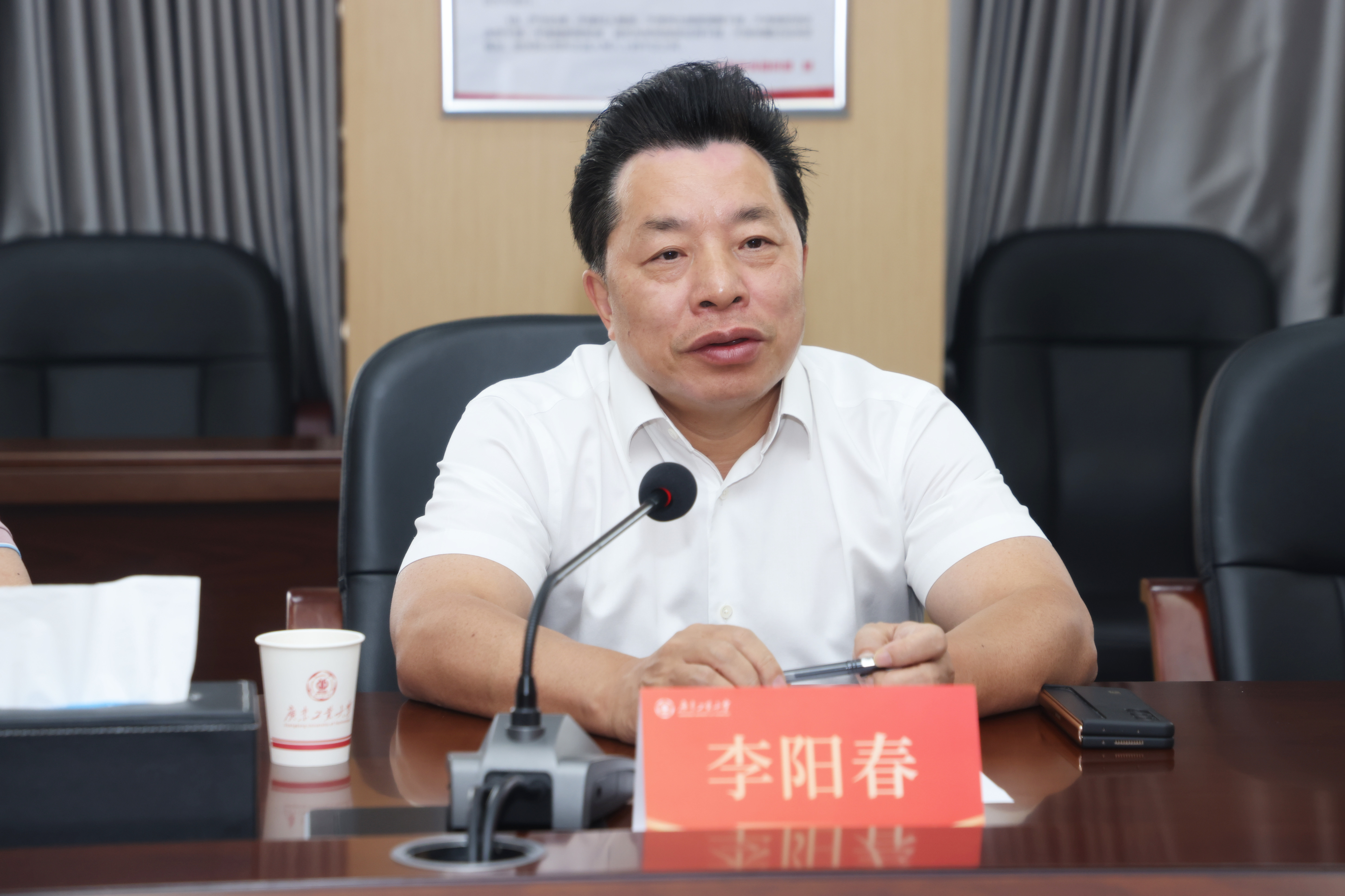 邱学青对李阳春一行的到来表示热烈地欢迎,对省委统战部一直以来对学校统战工作的指导、关心和支持表示衷心的感谢。他向调研组介绍了学校的办学理念和特色,以及近年来学校发展取得的突出成绩,并表示学校将以更高的政治站位奋力推动统战工作高质量发展,继续发挥学校工科优势,为广东省的经济高质量发展贡献力量。