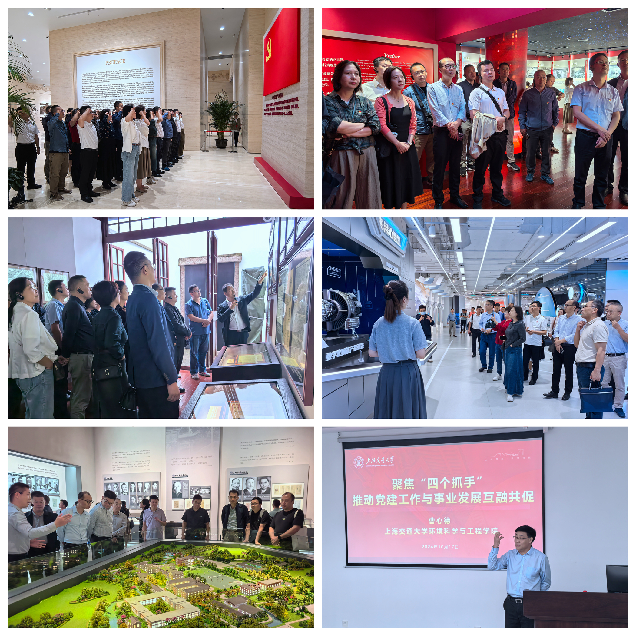 现场教学环节,学员们前往中共一大纪念馆、中共二大会址纪念馆共同探寻共产党人的初心使命,重温入党誓词、感悟伟大建党精神;赴上海城市数字化转型体验馆,体验工业元宇宙、折叠工厂、黑科技数字人制作等最新数字科技成果;在上海交通大学校史博物馆感悟交大历史变迁,与上海交通大学环境科学与工程学院领导干部进行学习交流。