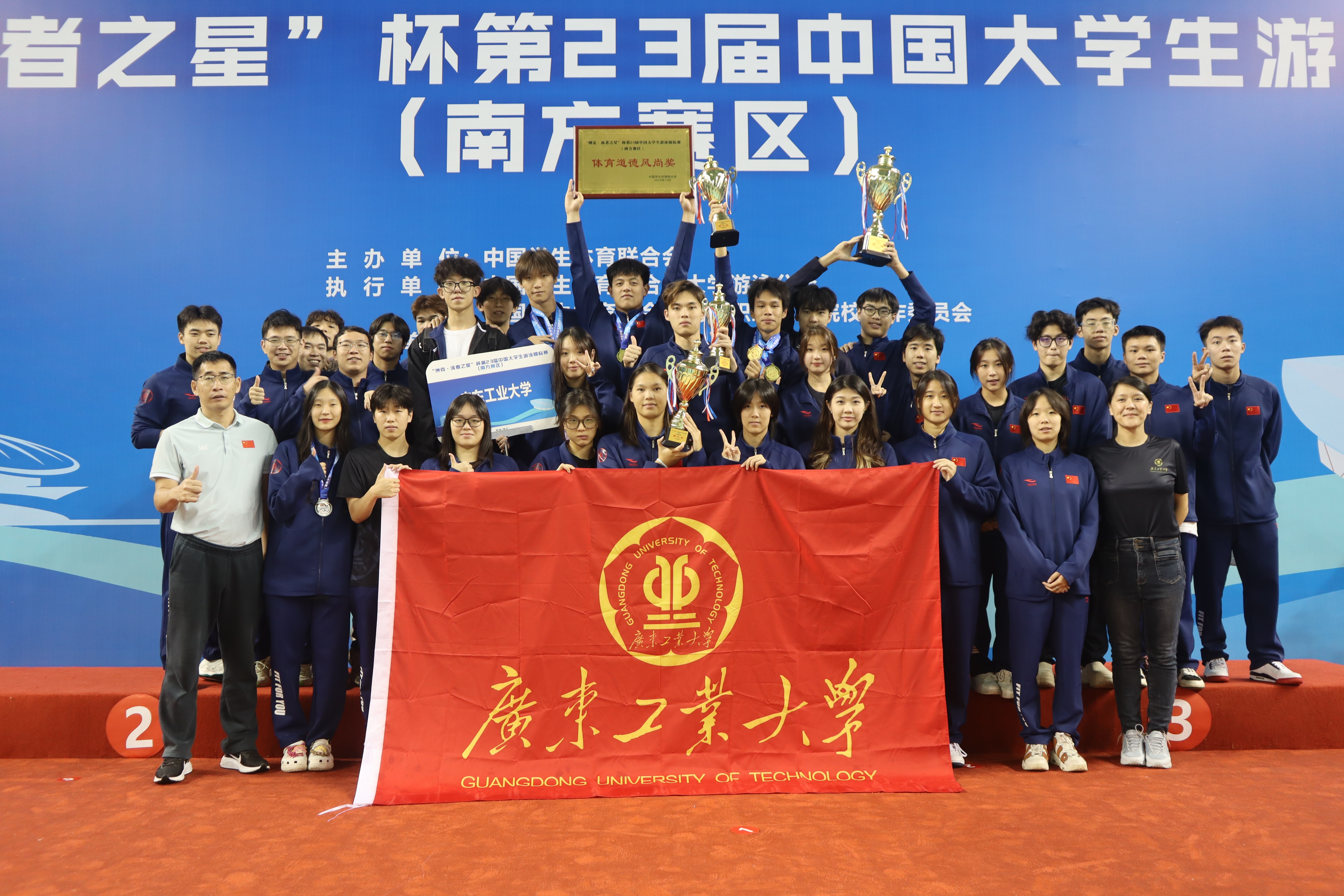广工代表队由领队、教练员和32位队员组成,分别参加甲组、丙组、丁组3个组别的比赛。经过4天的激烈角逐,我校健儿凭借出色的竞技水平和卓越的团队合作精神,斩获7金5银3铜,并打破一项赛会纪录,以出色表现获得体育道德风尚奖、男子甲组团体总分第一名、女子丙A组团体总分第三名的优异成绩,实现了“双丰收”,创造了广工在南区国赛历史最好成绩。