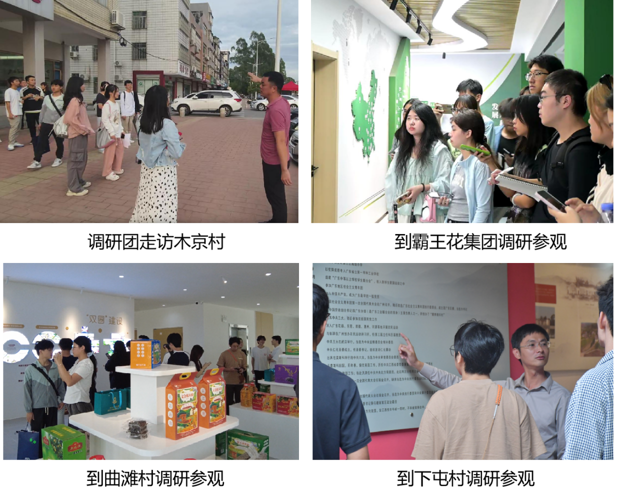 座谈会后,调研团先后到东源县第一小学、木京村、建设路社区、霸王花食品公司、义和镇曲滩村和下屯村以及东源县“百千万”人才干部培训基地进行实地调研,增强对东源乡村振兴工作的“第一感官”认识,掌握助力农村事业发展的第一手资料,进一步明确团队竞赛作品的重点和方向,进而为乡村振兴工作提出具有前瞻性、针对性和可行性的方案和建议。“此次调研的主要目的是了解东源县当地温泉和中药产业的资源优势。在调研过程中,我们深刻感受到这里民风淳朴、资源丰富,风景优美,非常适合发展相关产业。我们还发现当地的中医药产业十分发达,这为项目研究和实施提供了很好的契机。”来自香港岭南大学的刘馨蔓同学兴奋地谈到。木京村主要负责人表示:“调研团同学提出的问题非常具体且有深度,涉及农村发展的多个方面,包括基础设施建设、农业产业发展以及人居环境改善等。”