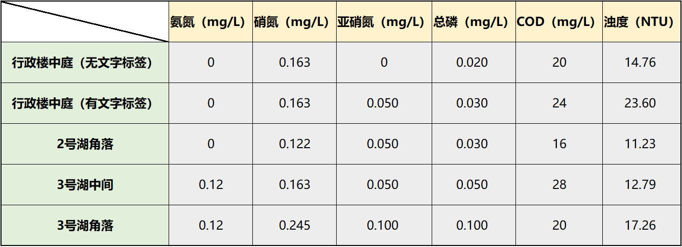 综合治理后的中心湖各项水质指标