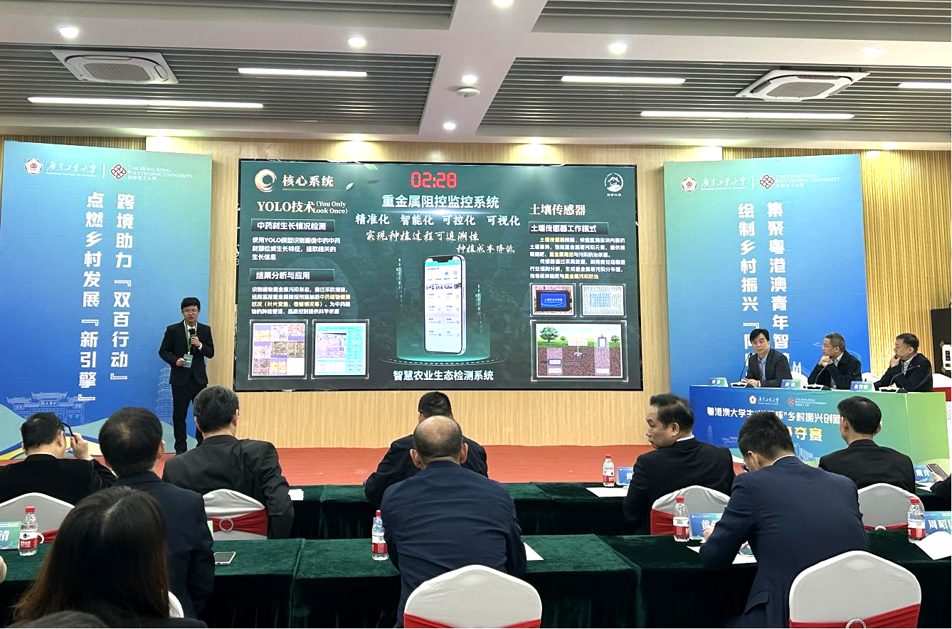 12月8日,由省教育厅指导、线上买球官网(中国)官方网站和香港理工大学首次跨境联合主办的粤港澳大学生“双百杯”乡村振兴创新创业竞赛总决赛暨颁奖仪式,在广工大学城校区国家级创新创业教育实践基地-工大创谷举行。来自粤港澳三地33所高校49支团队从108所高校623支初赛队伍脱颖而出,近200名学生汇聚广工大学城校区参加总决赛,用科研成果、调研报告、规划方案为乡村振兴事业建言献策、贡献智慧。