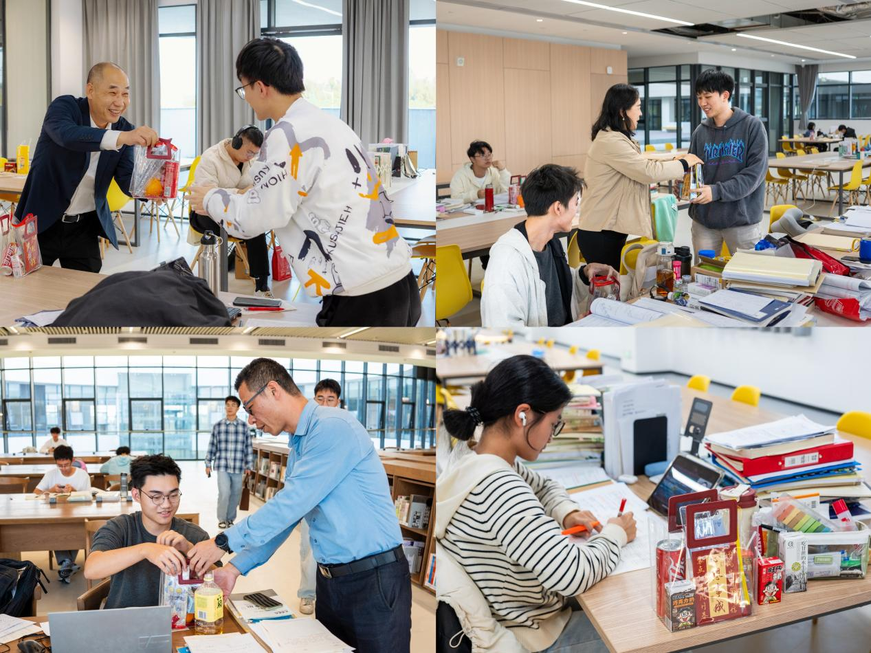 机电工程学院负责人、班导师代表、2021级本科生辅导员深入西区宿舍,亲自将350余份精心准备的“暖心大礼包”送到学生手中,并赠与暖心祝愿,希望同学们用最好的状态迎接考试。“暖心大礼包”内涵丰富、寓意深远。祝福卡片承载着学院对考研学子最真挚的期许与祝福,考研专用文具套装、橙子心意满满,祝愿考研学子妙“笔”生花、心想事“橙”、一战成硕。此间,老师们也深入学生宿舍,与同学们亲切交谈、加油鼓劲。关切询问同学们的备考情况及身体状态,嘱咐同学们以平和的心态、强健的身体迎接考试的到来。