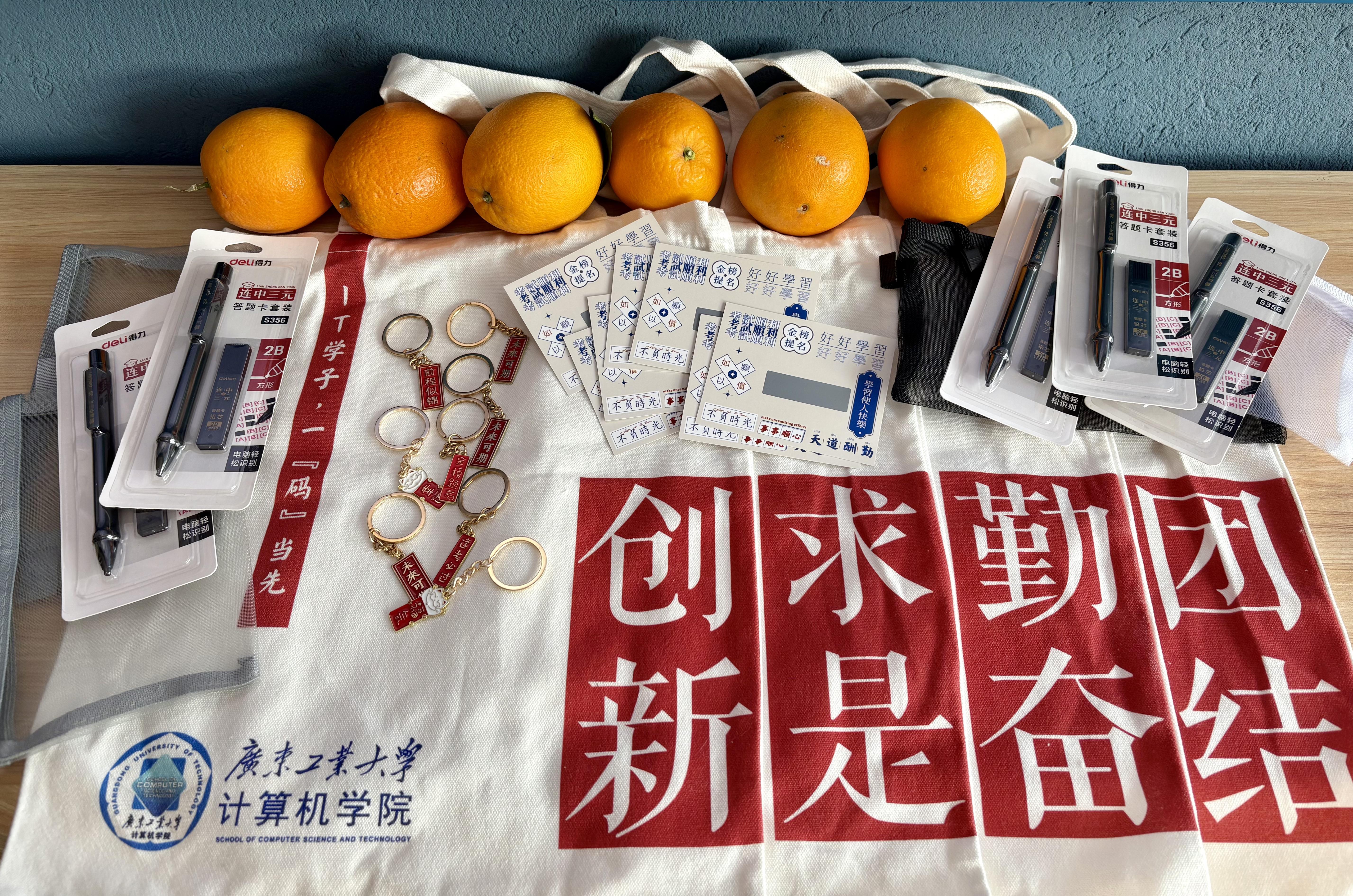 揭阳校区先进制造学院相关负责人、毕业班辅导员和学生代表们带着满载祝福的“考研加油包”,走进考研自习室,以礼物做媒,为考研学子们传递必胜信念,以行动暖心,诠释学校“以生为本,爱生如子”的教育理念。在这份加油包内,不仅有考研文具套盒、心想事“橙”水果、福气“旺旺”饮品、“金榜题名”可乐,更有校区师生亲笔题写的祝福卡片,礼轻意重、字少情深,每一份礼物都饱含校区对考研学子们的期望与祝福。