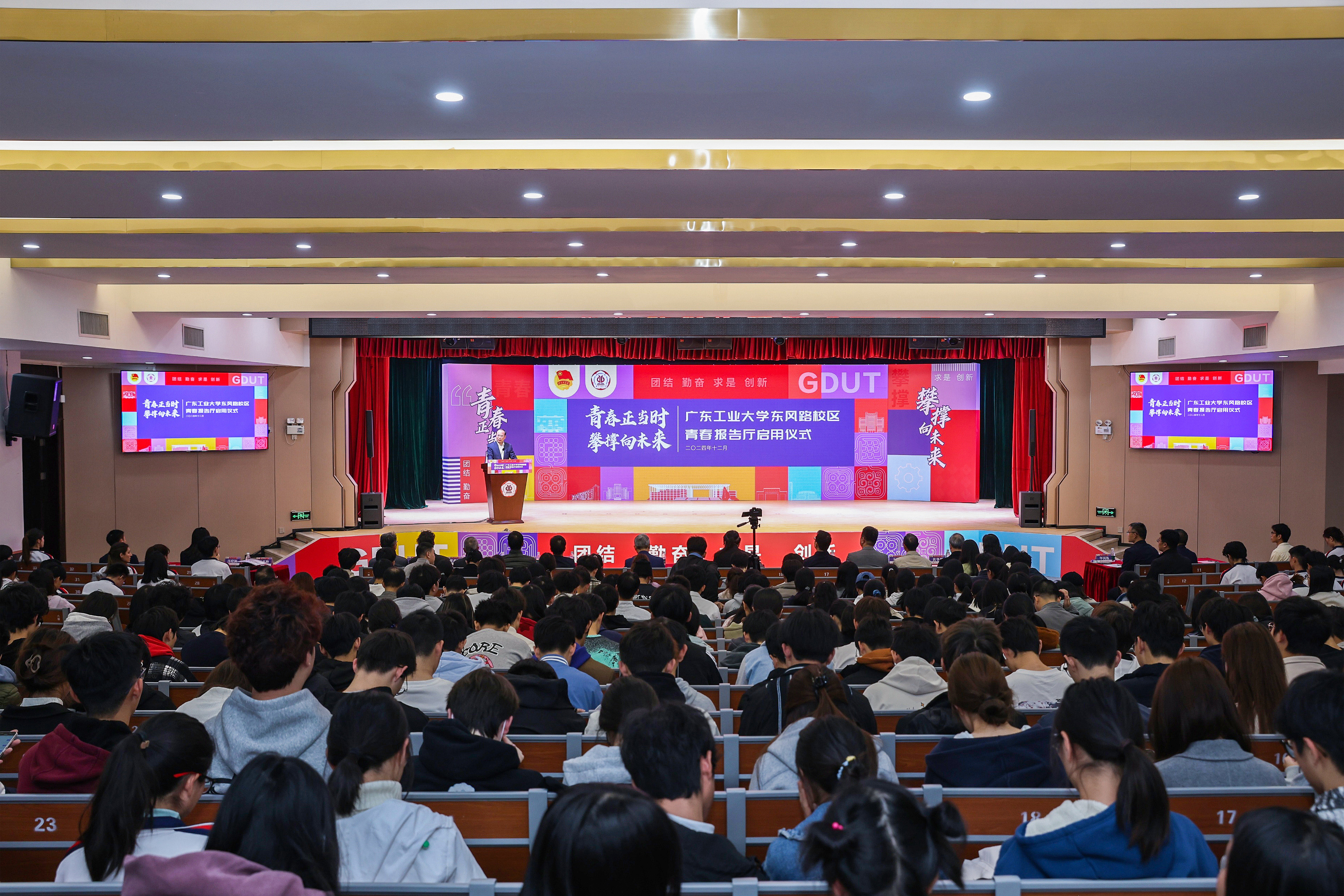 12月17日,广工东风路校区青春报告厅正式启用!这是学校2024年十件民生实事之一,焕然一新的舞台、升级的灯光与音响设备、精心设计的文化展示空间,为校园文化增添了新的生命力。