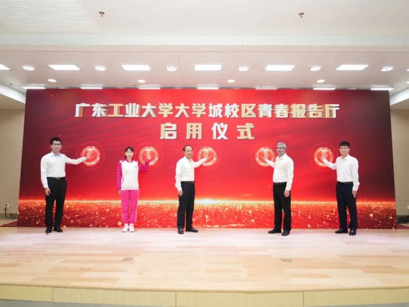 学校领导和学生代表共同为东风路校区青春报告厅按下启动键
